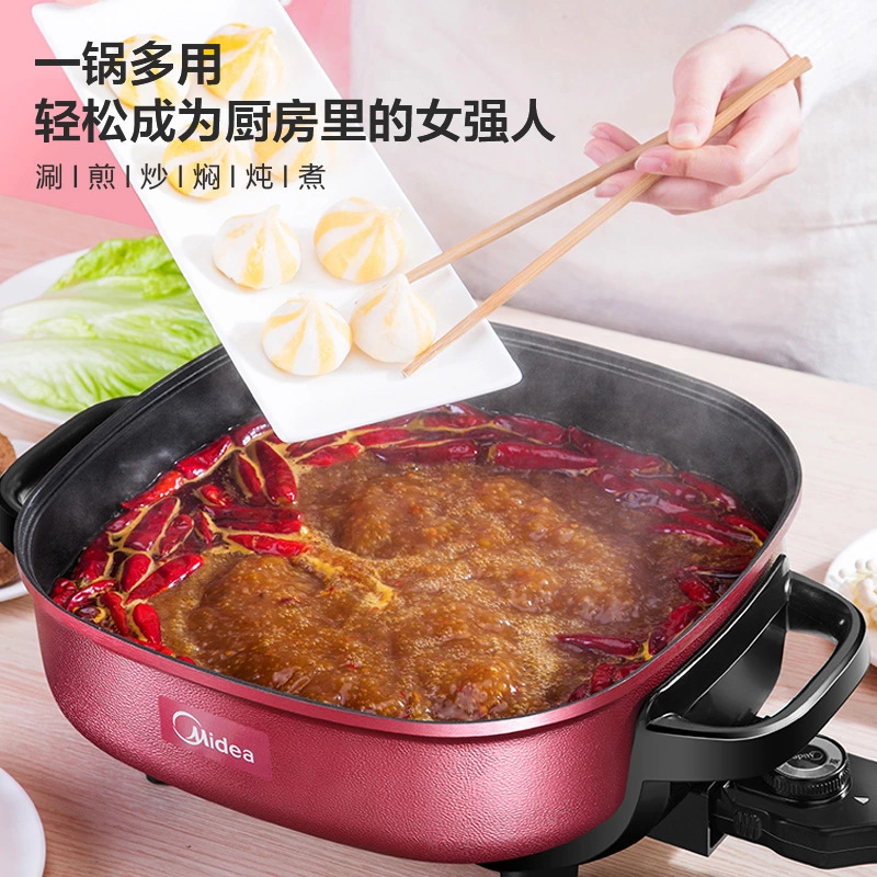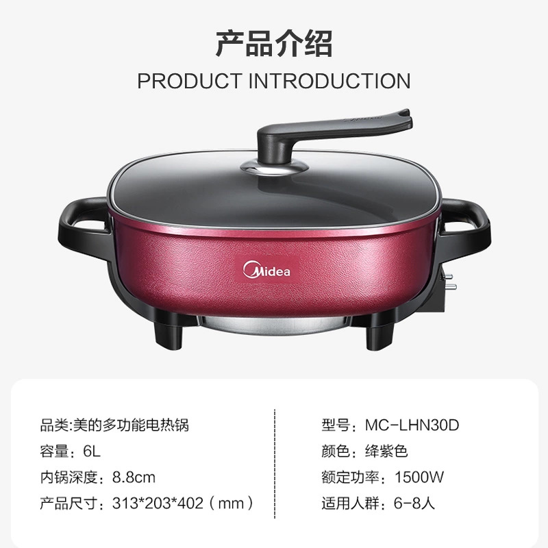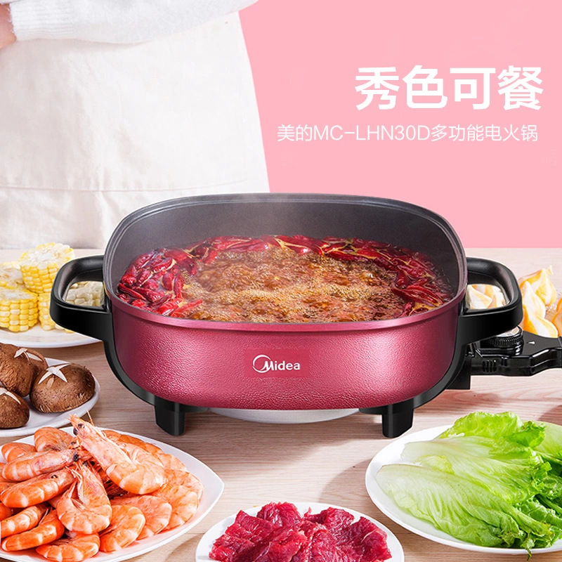 美的电火锅MC-LHN30D 家用多用途电热锅电煮锅6L大容量不沾煎烤锅
