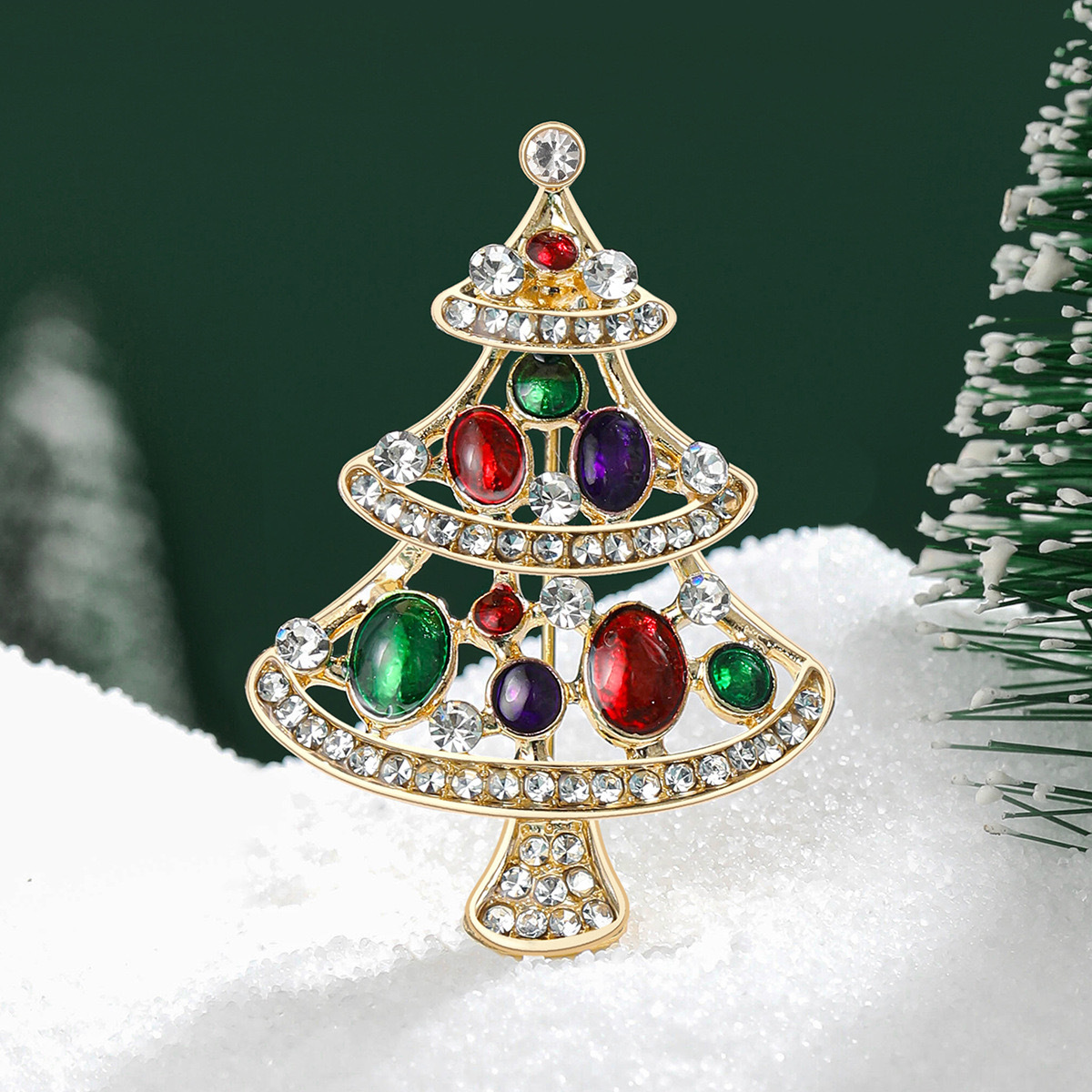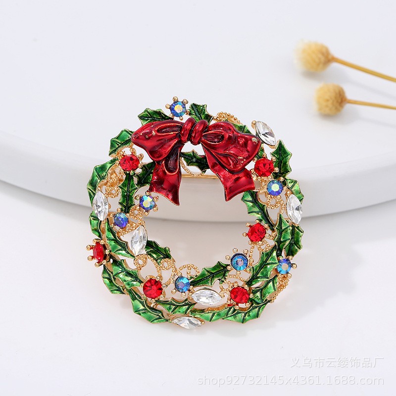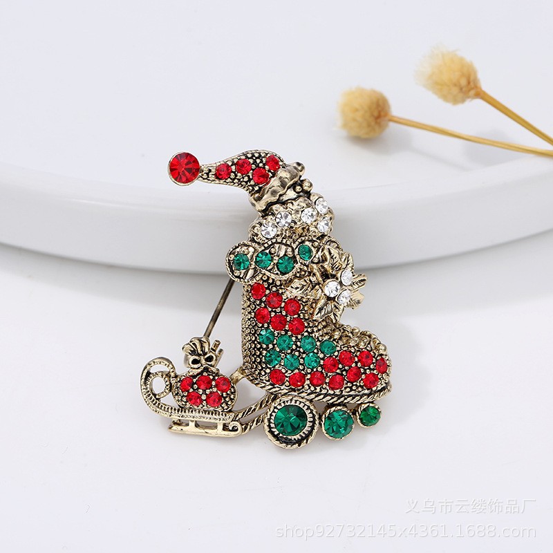 圣诞系列饰品胸针复古满彩钻圣诞配饰雪花衣饰高档圣诞节别针外贸