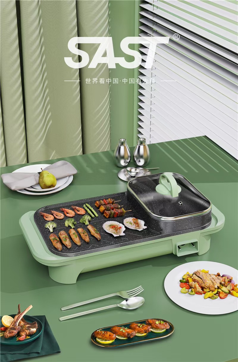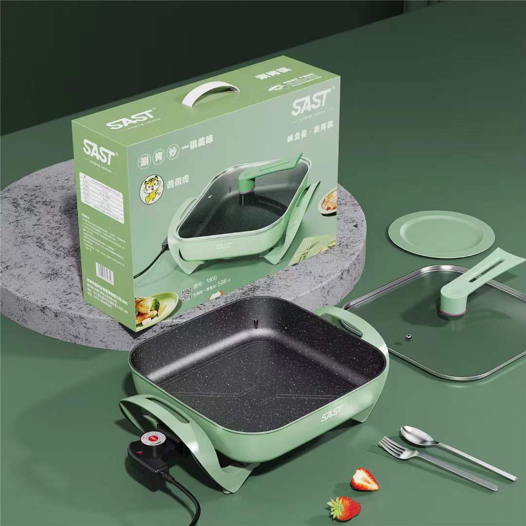 先科电热锅方形电火锅涮烤一体锅烤肉锅多用锅保险4s店礼品批发