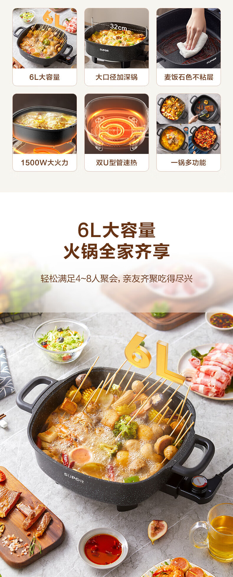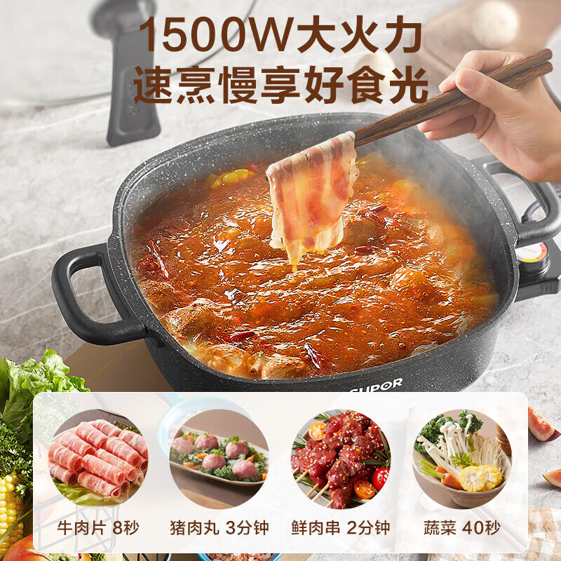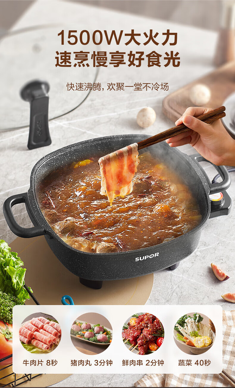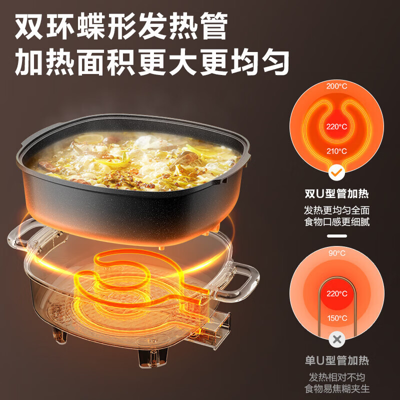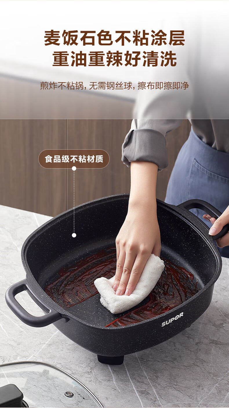 苏.泊尔电火锅电炒锅电煮锅家用多功能烤肉锅电热锅6L多用途锅黑