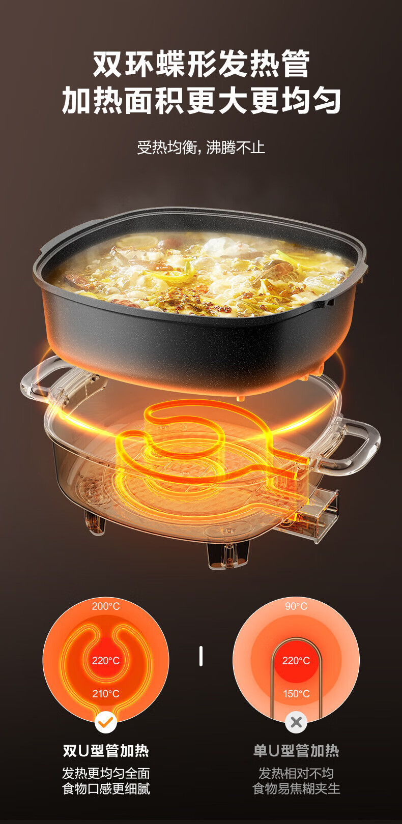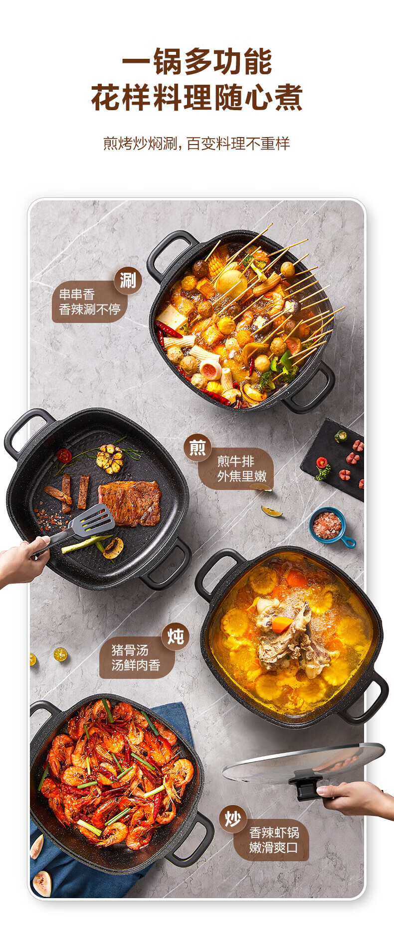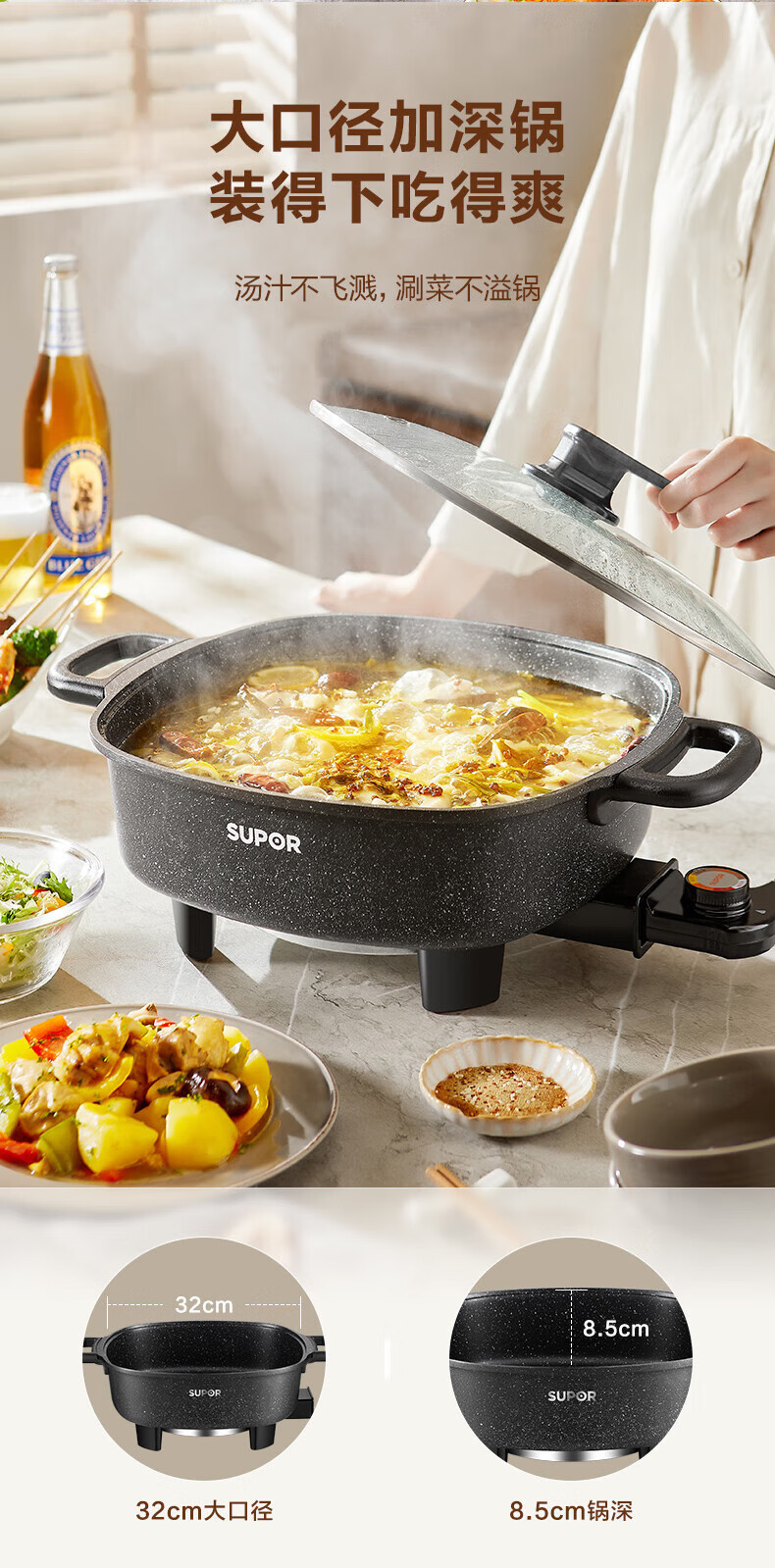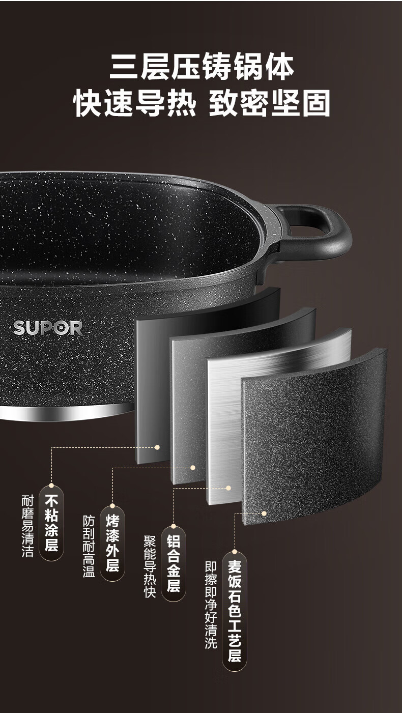 苏.泊尔电火锅电炒锅电煮锅家用多功能烤肉锅电热锅6L多用途锅黑