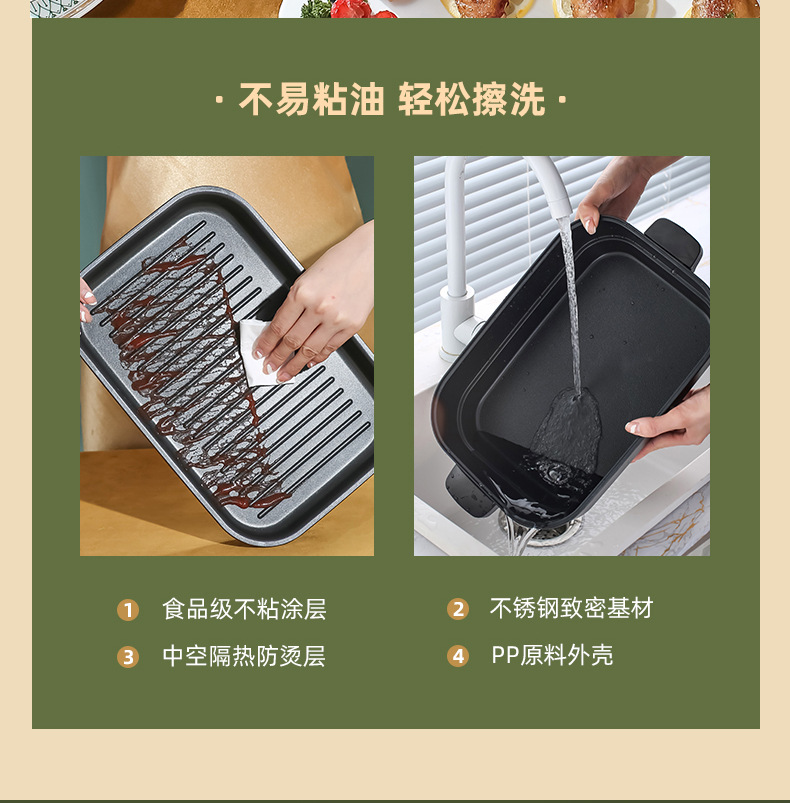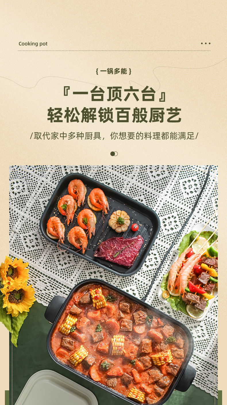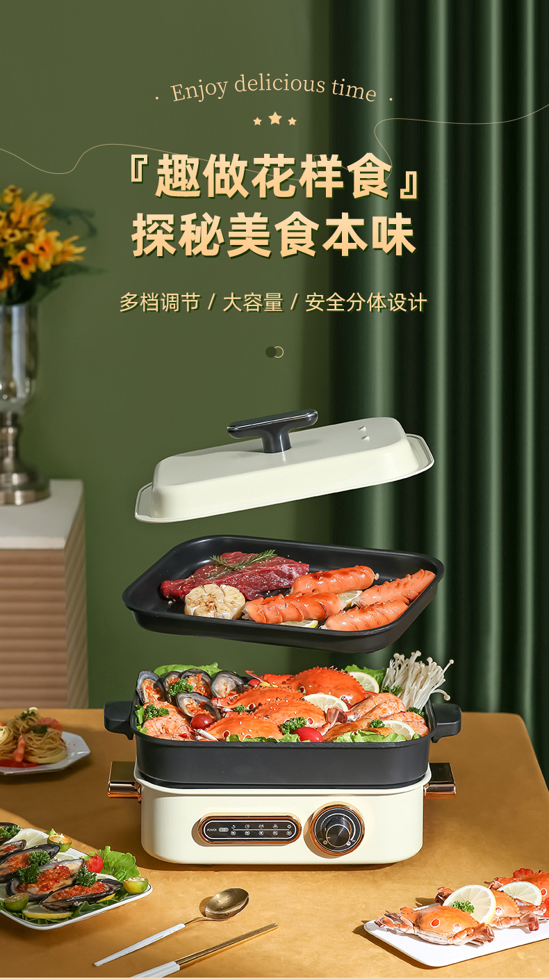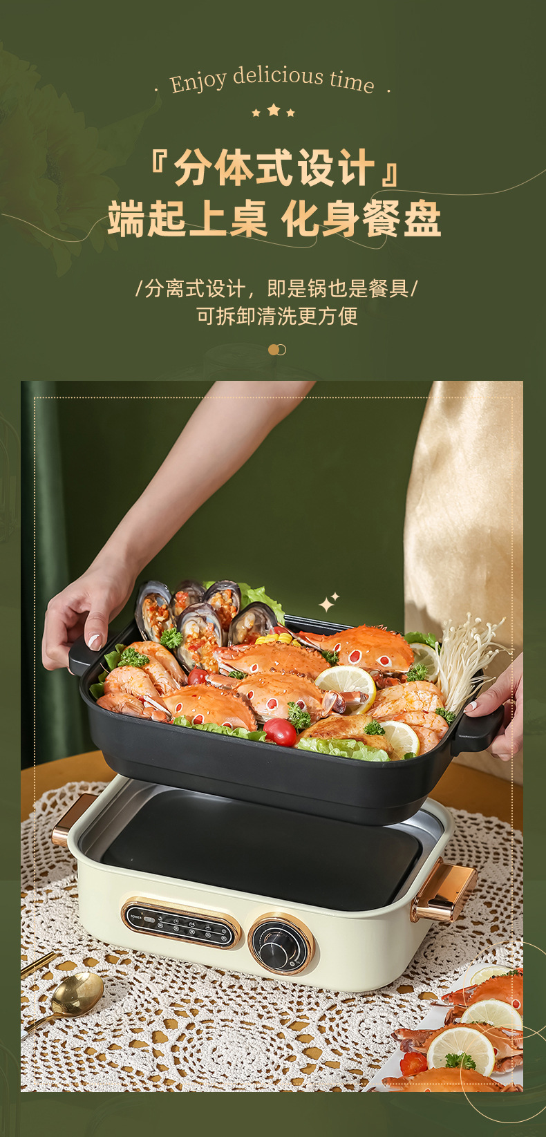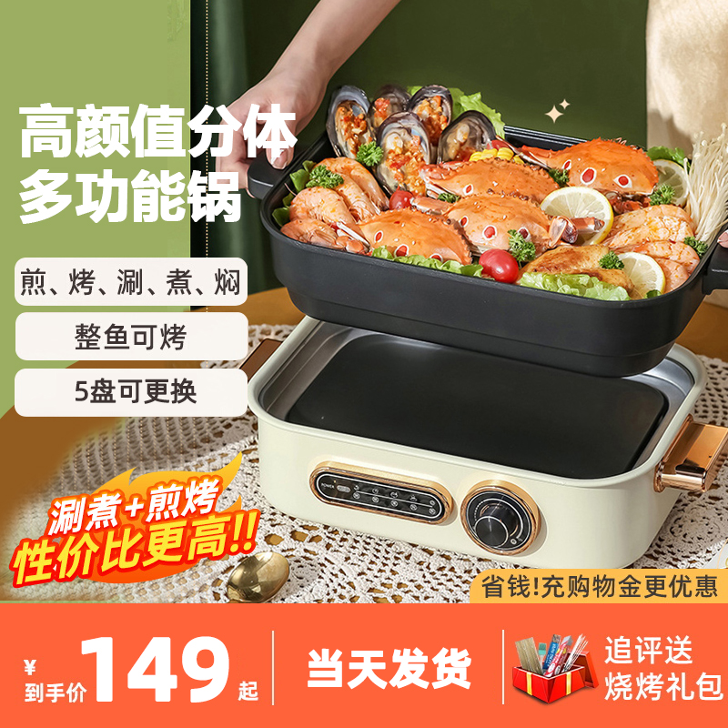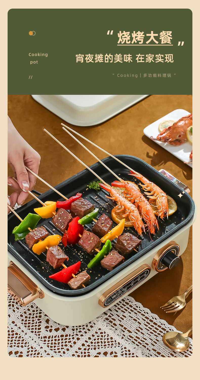 烤肉锅家用多功能料理锅蒸煮煎烤涮分体电煎锅烧烤火锅鸳鸯多用锅