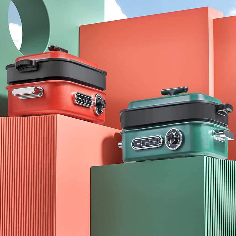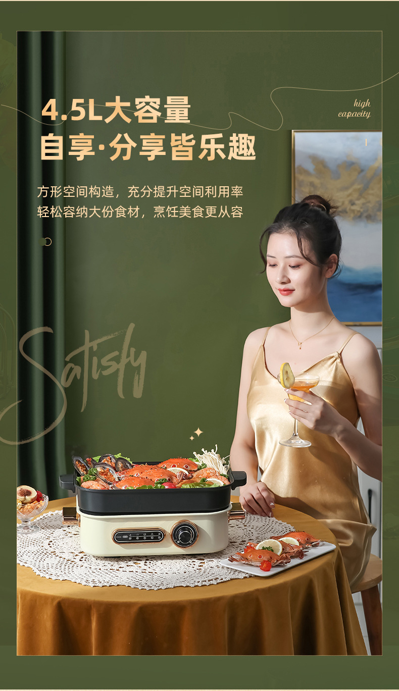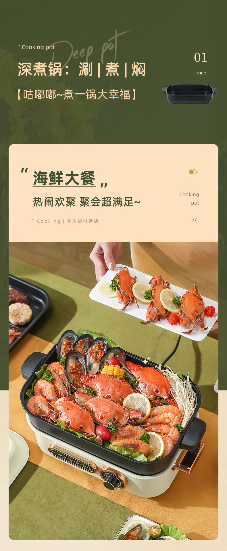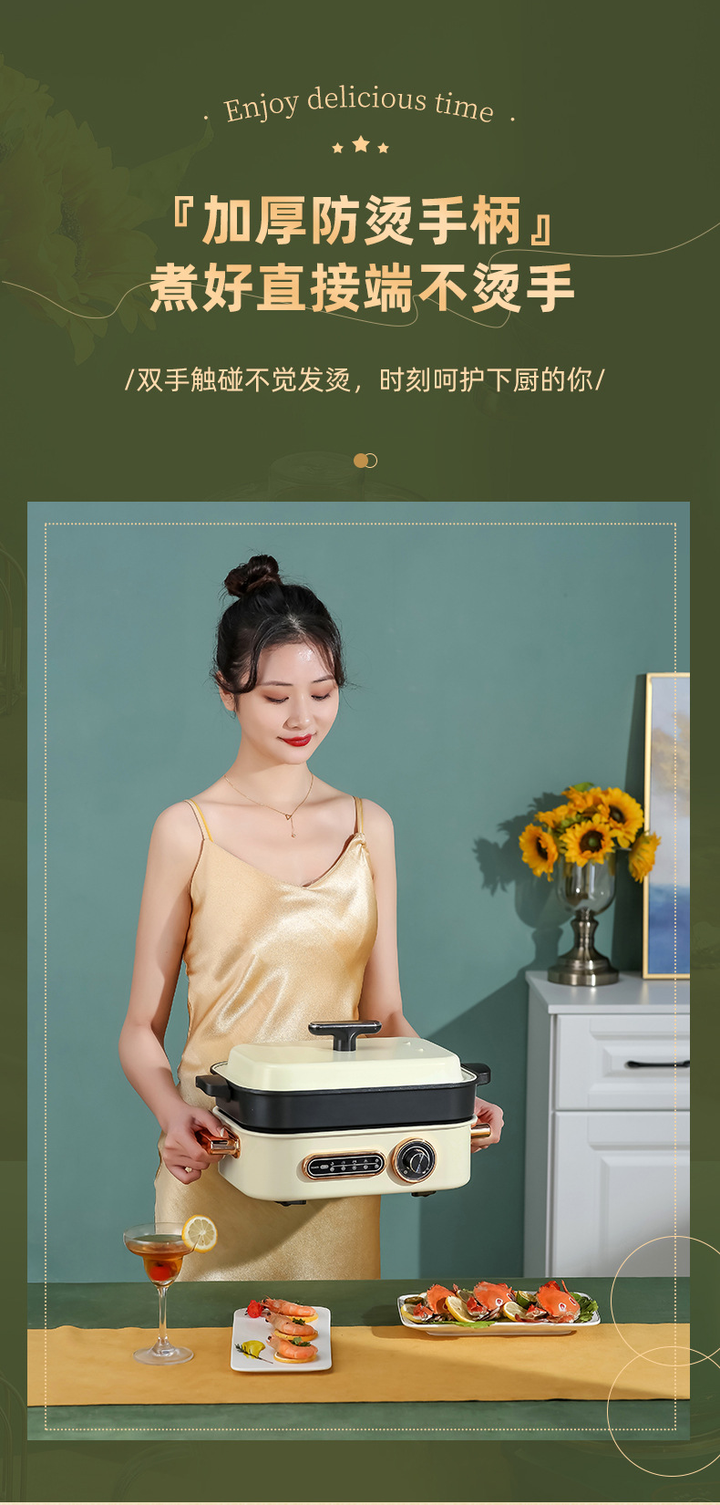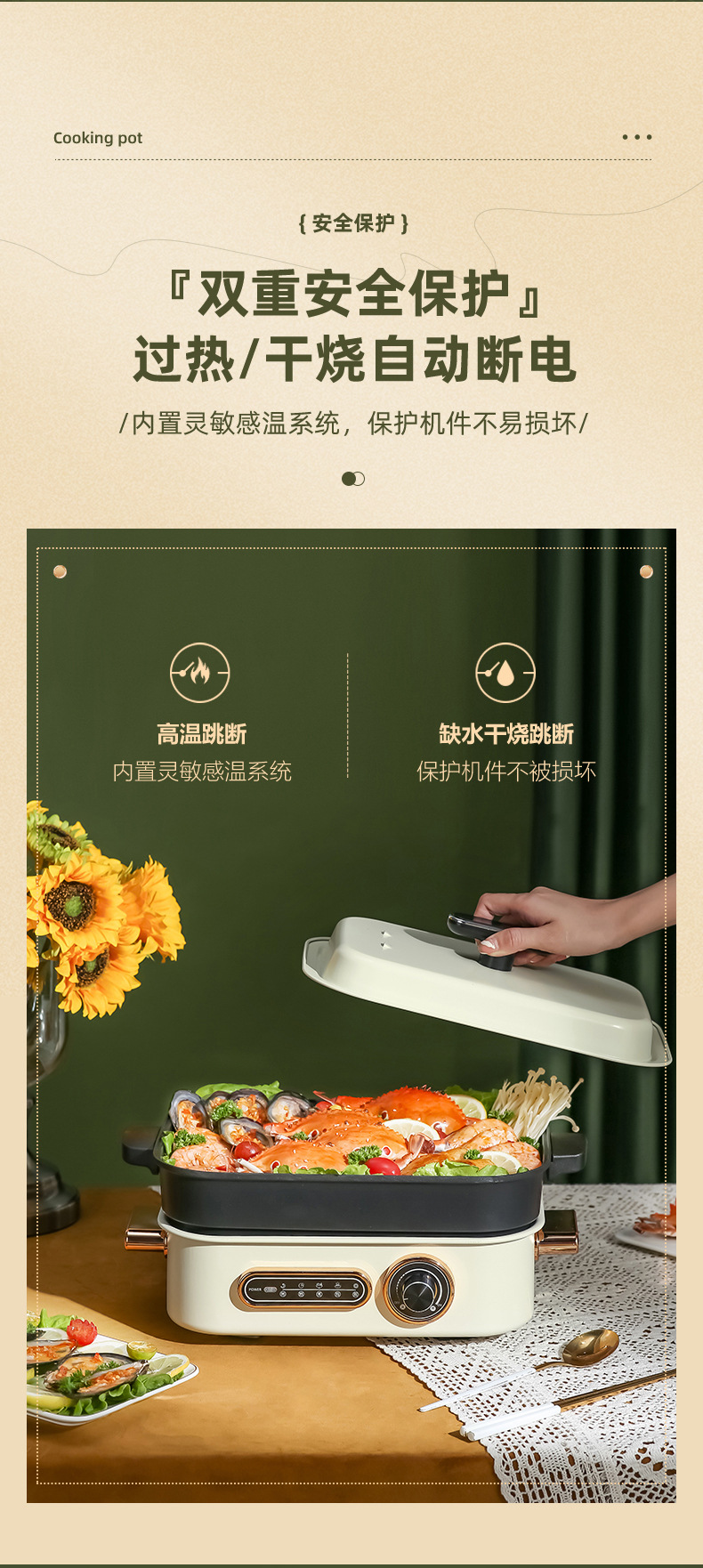烤肉锅家用多功能料理锅蒸煮煎烤涮分体电煎锅烧烤火锅鸳鸯多用锅