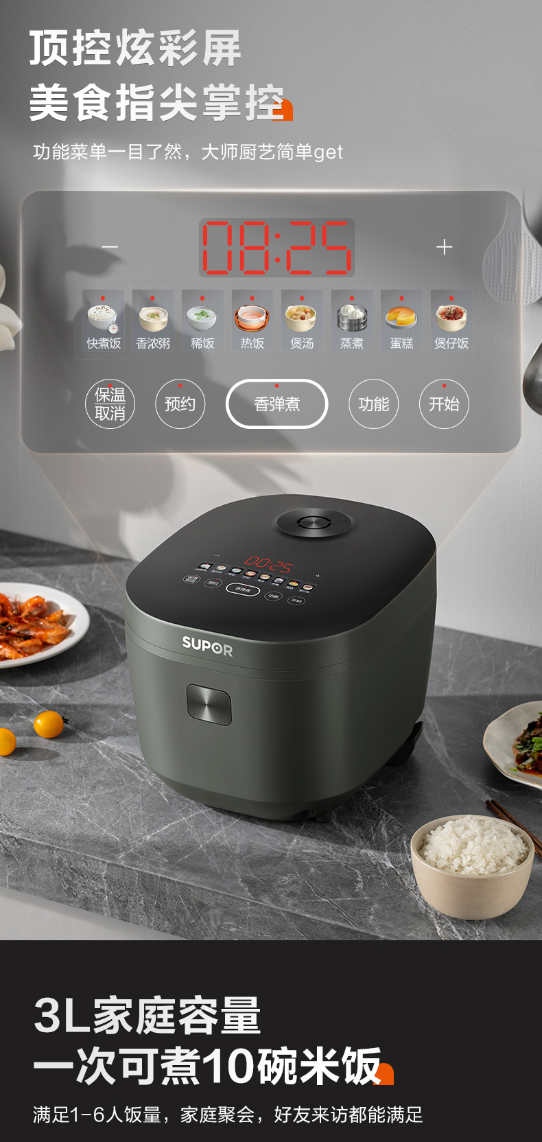 苏泊尔电饭煲3L多功能智能预约家用蓝钻厚釜内胆电饭锅 SF30FC871