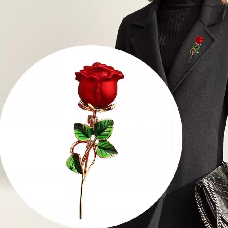 新款时尚气质优雅玫瑰花胸针红色高档衣饰领针别针滴油胸针胸花