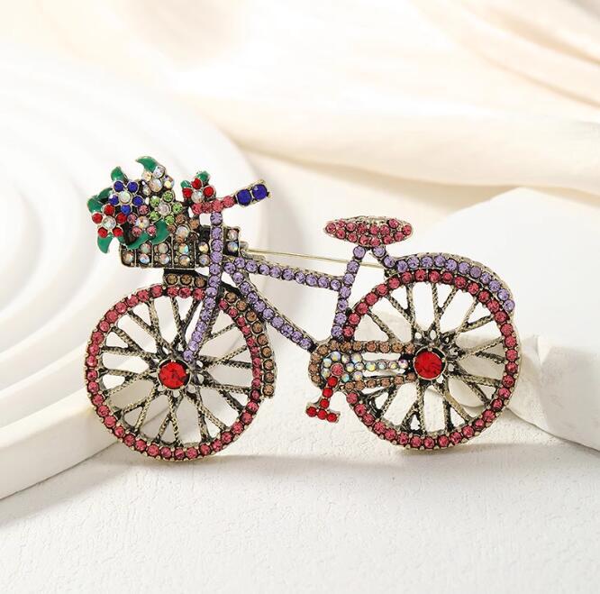 欧美跨境复古镶水钻自行车胸针个性时尚男女西服别针胸花厂家批发