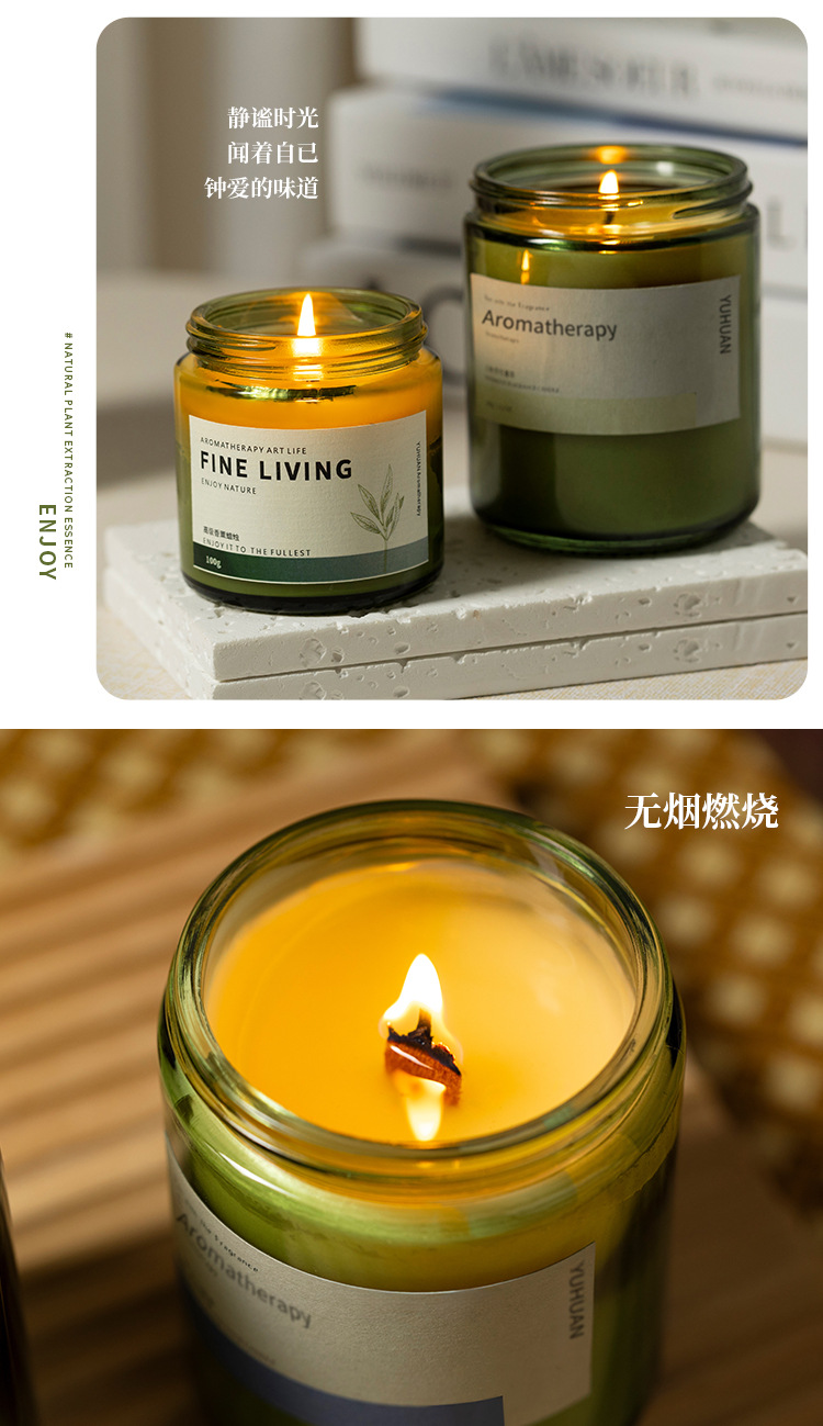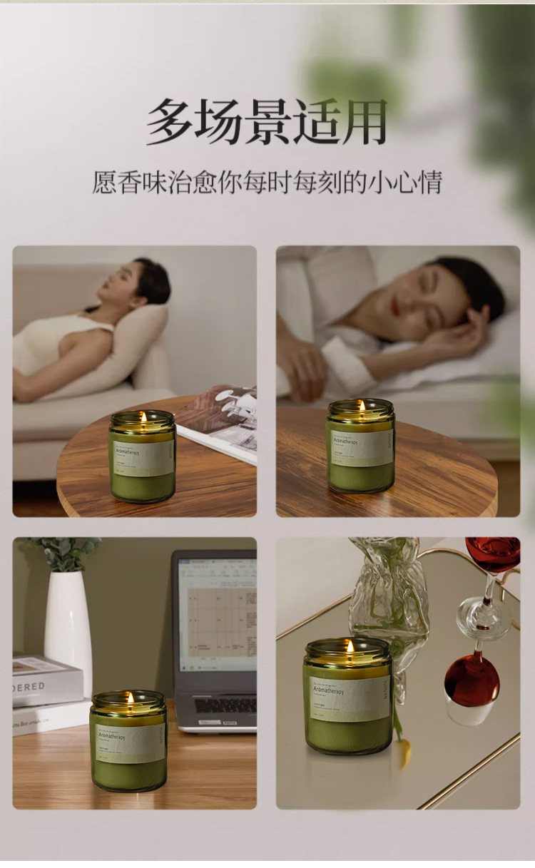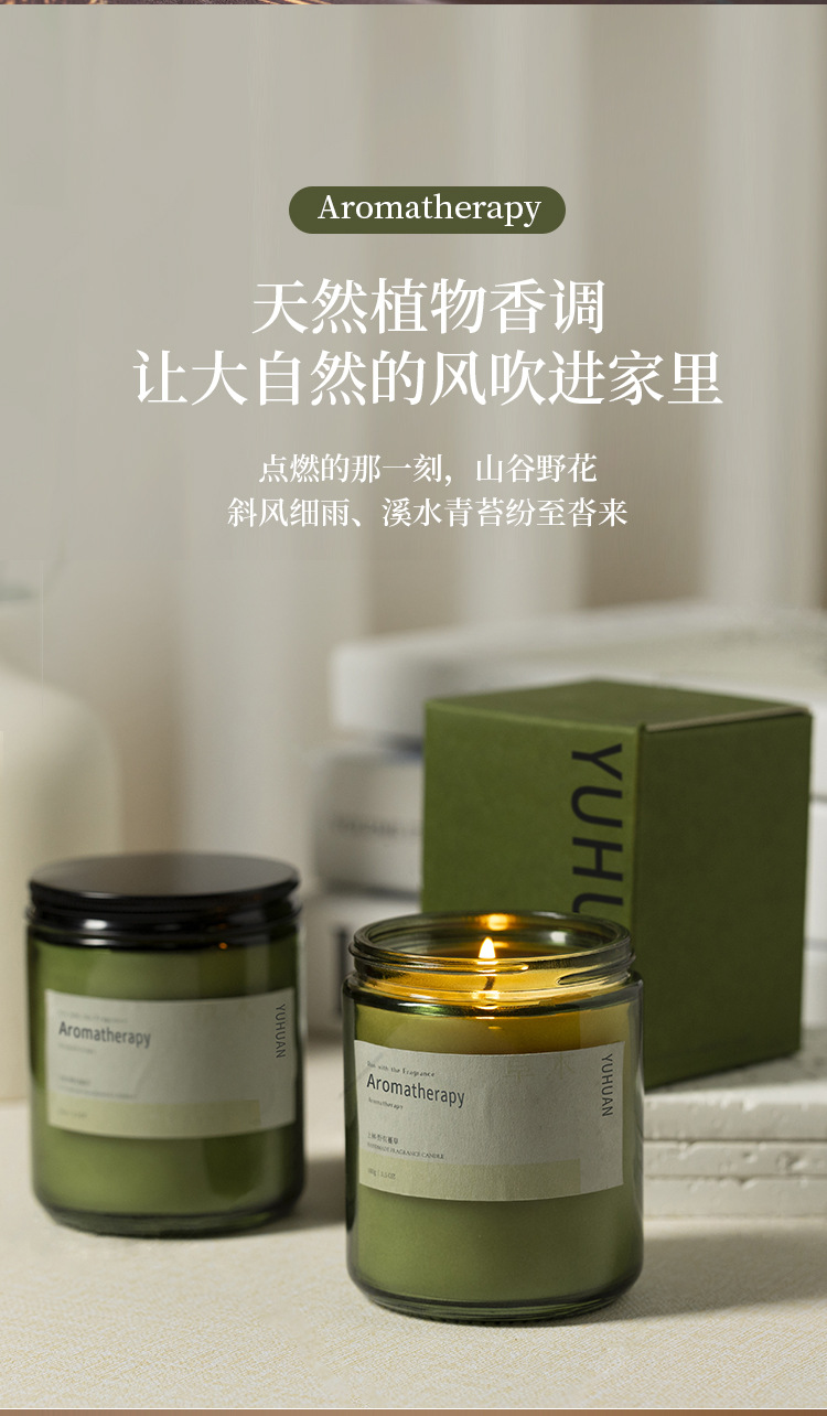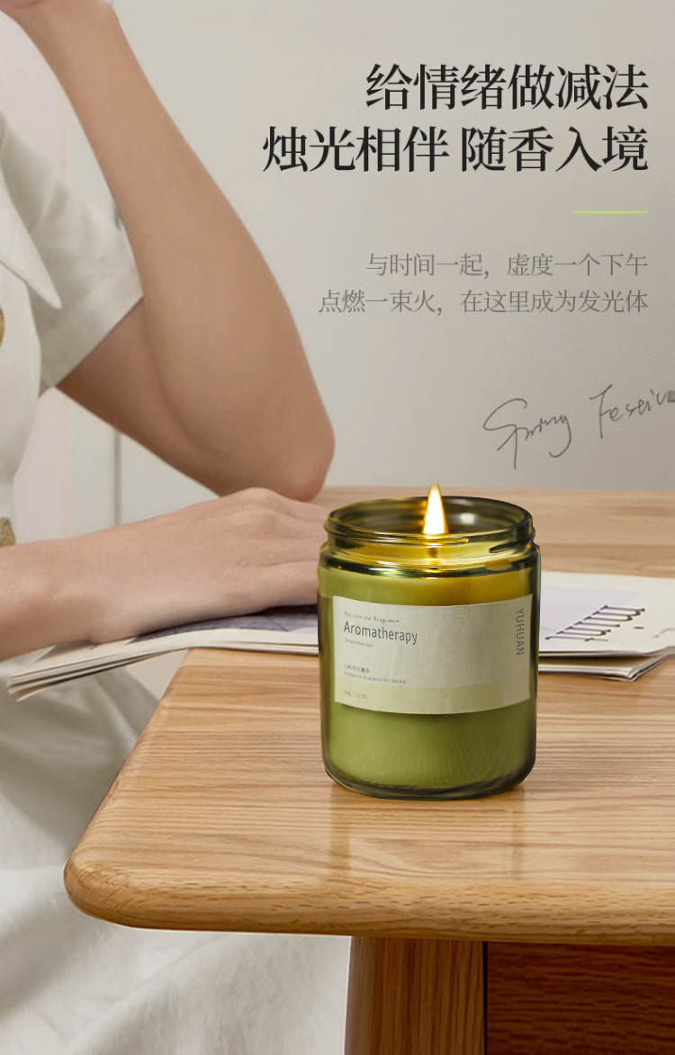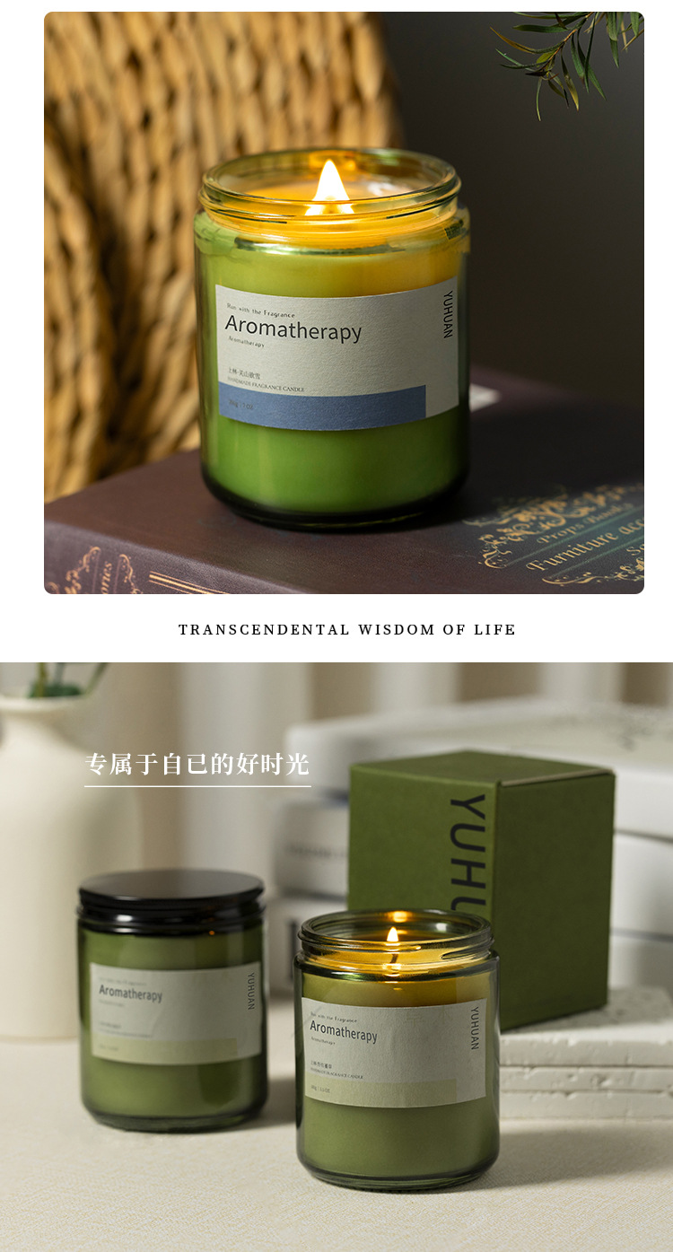 墨绿瓶香薰蜡烛摆件批发植物精油大豆蜡室内久香氛熏香伴手礼物