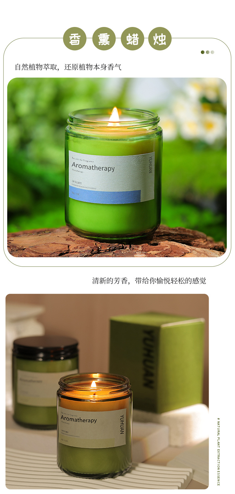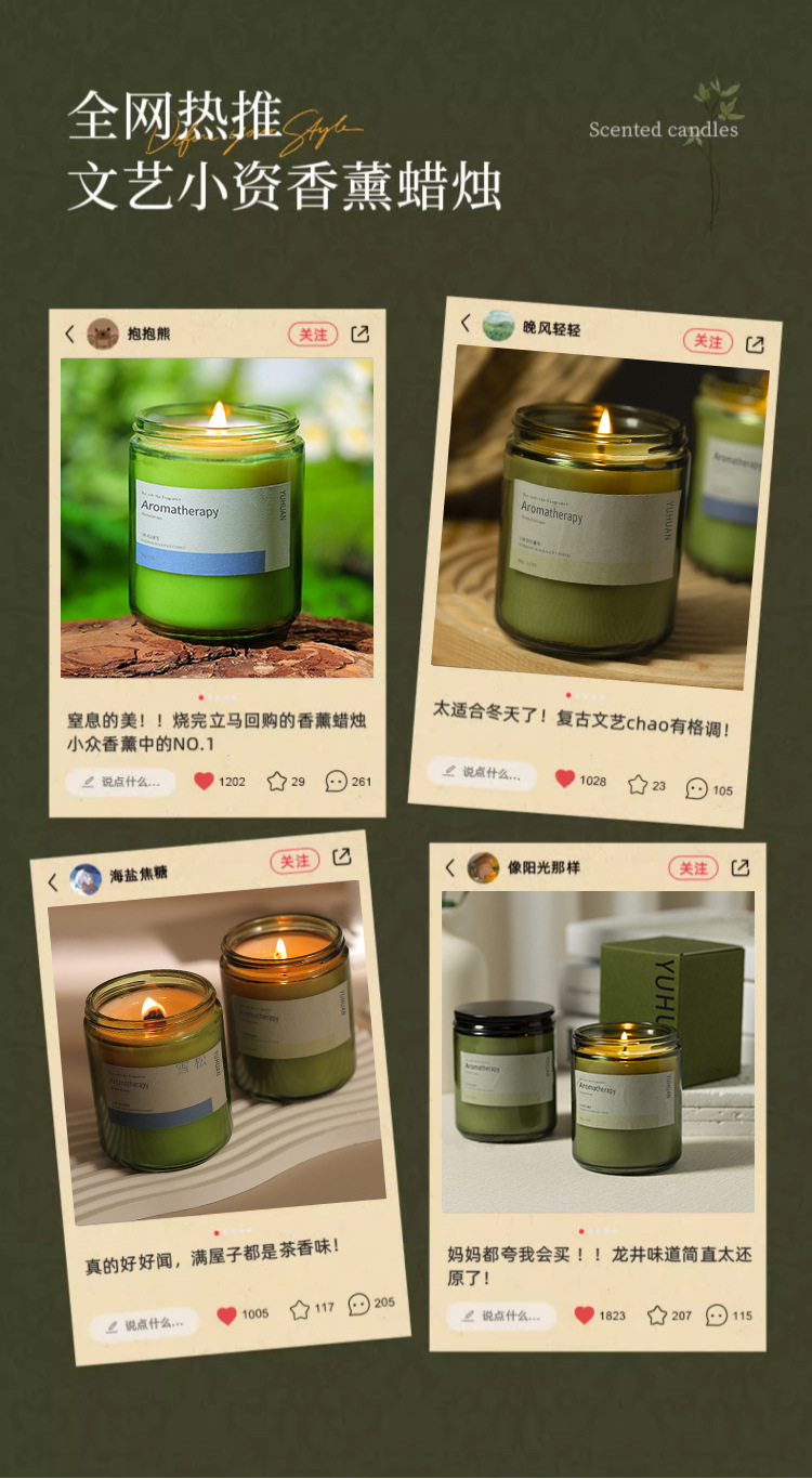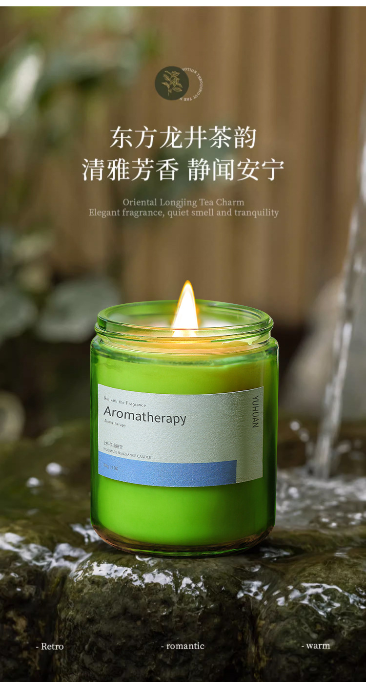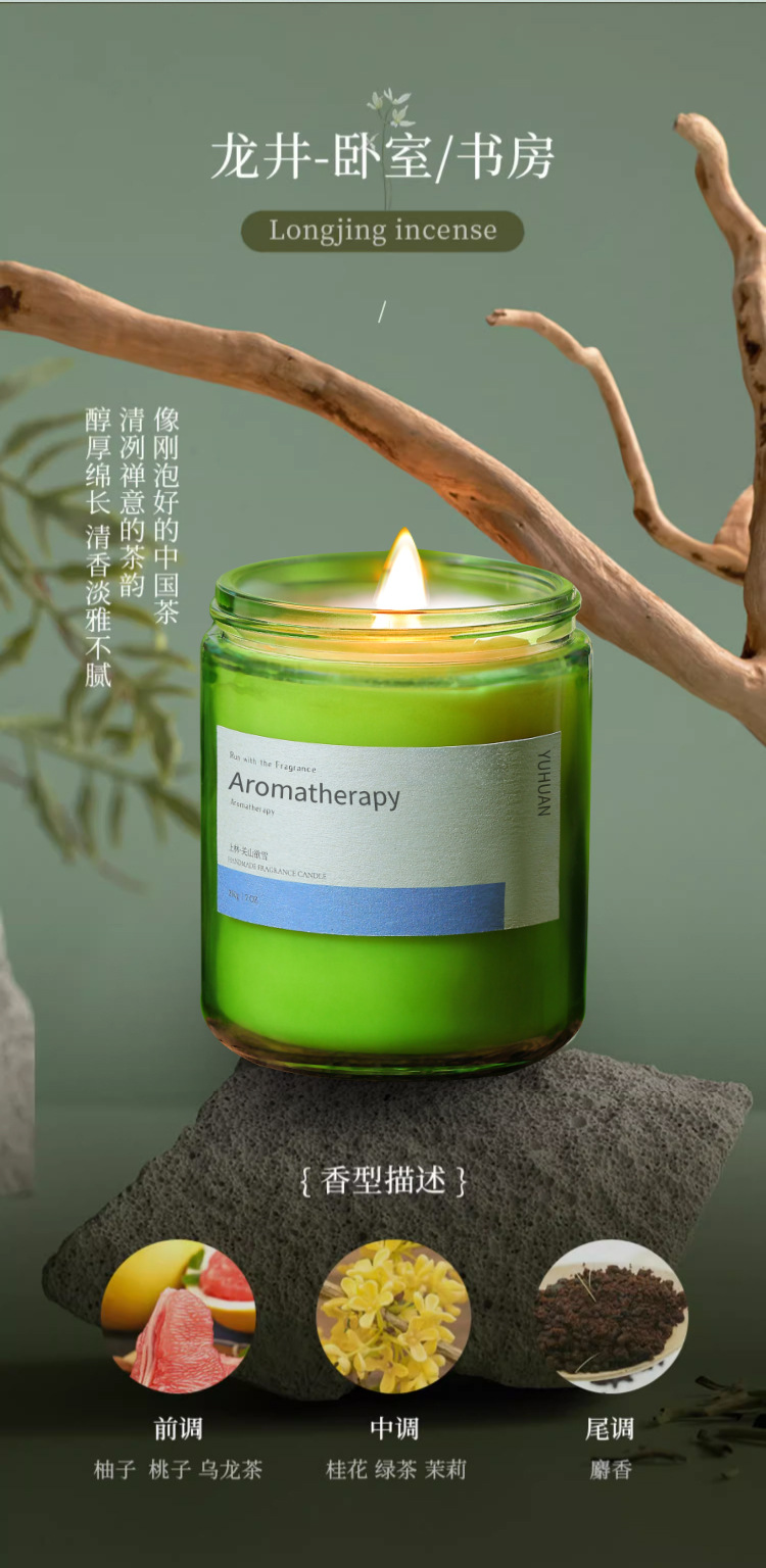墨绿瓶香薰蜡烛摆件批发植物精油大豆蜡室内久香氛熏香伴手礼物