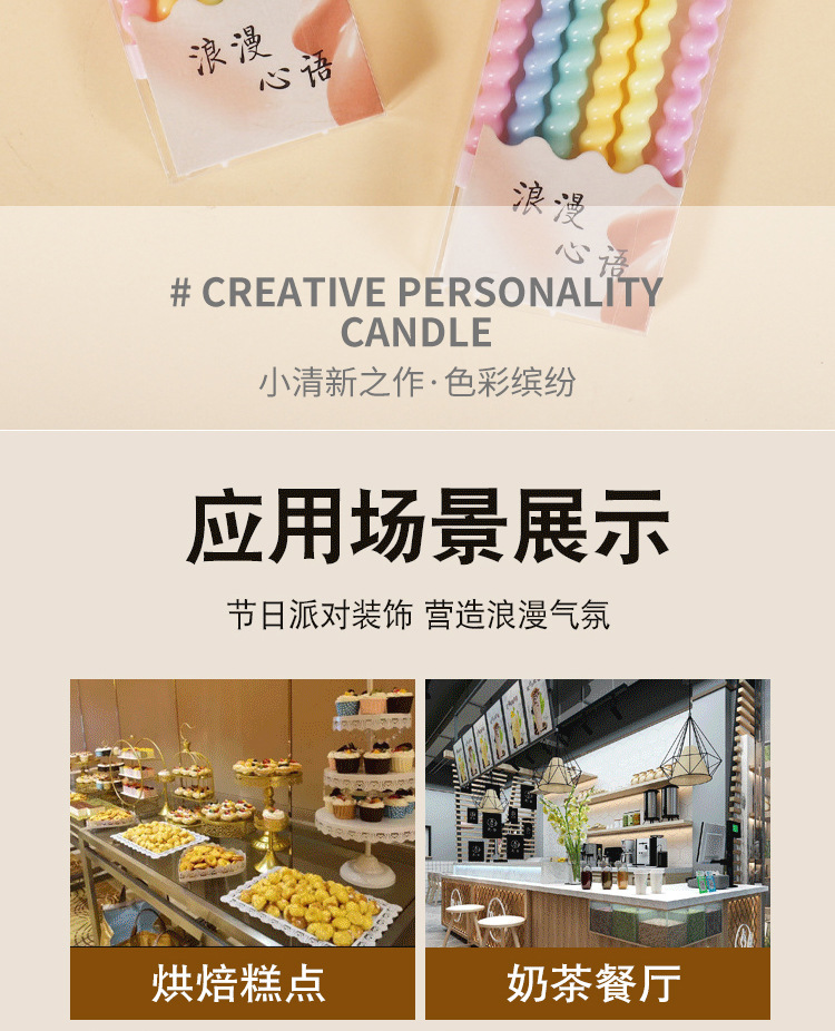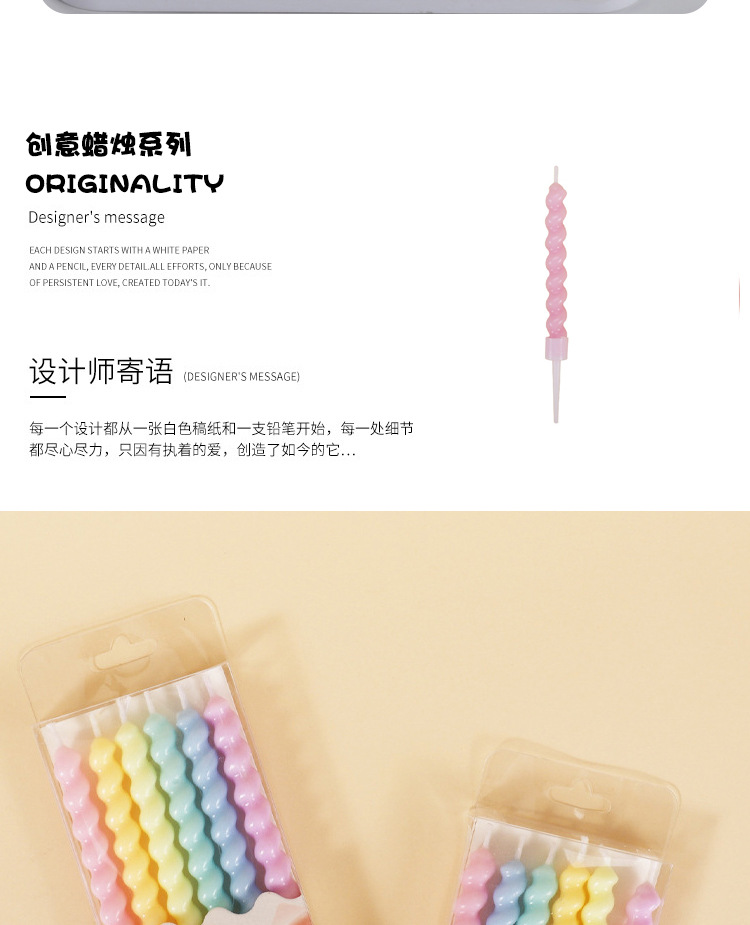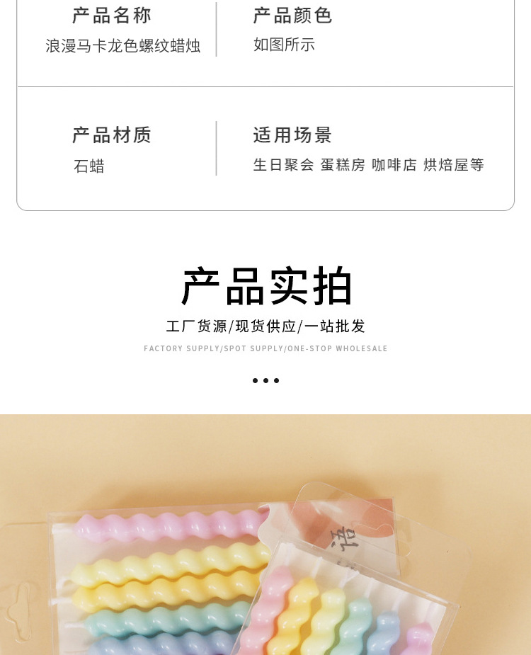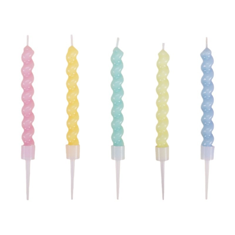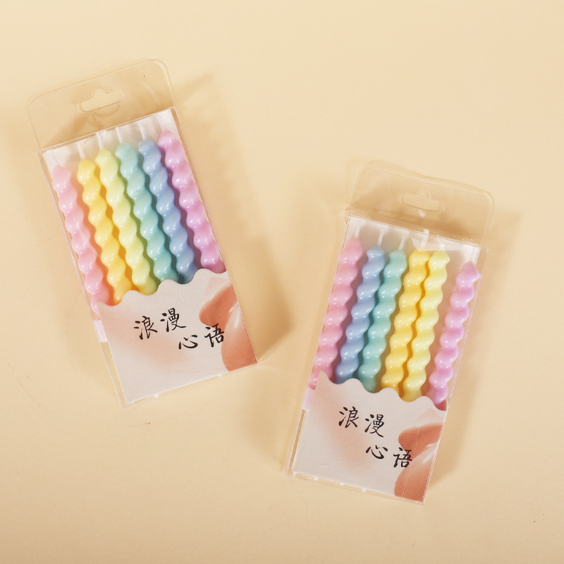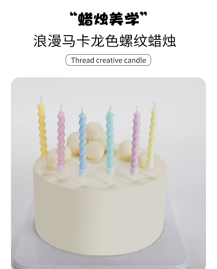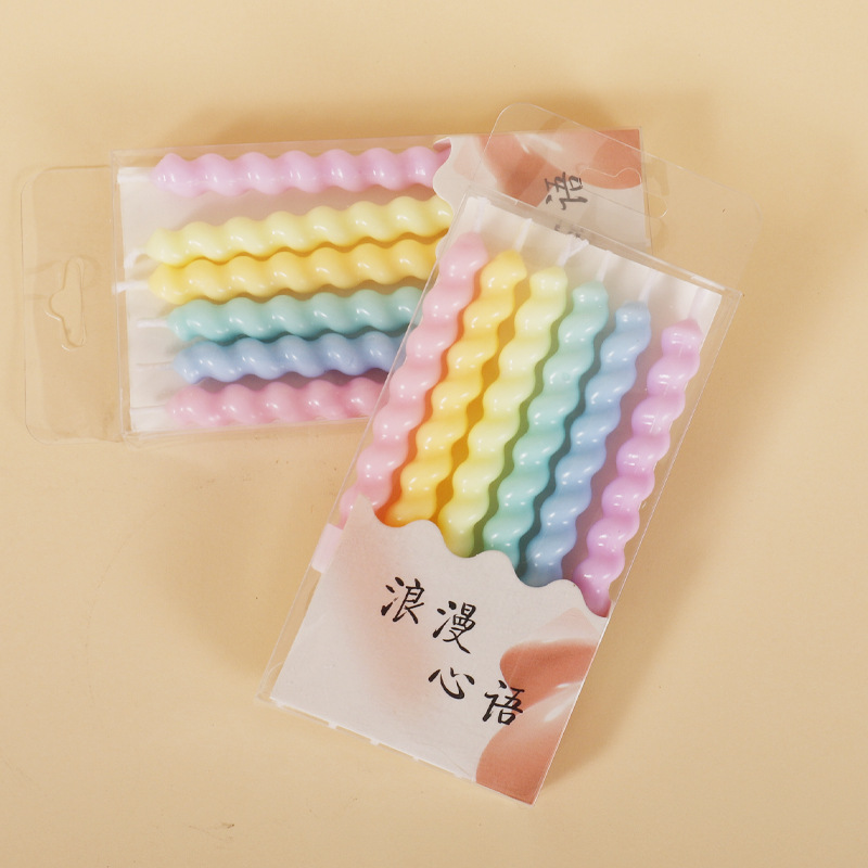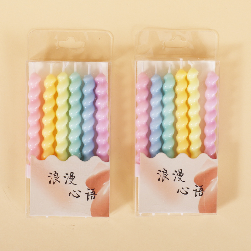 浪漫心旋马卡龙色螺纹蜡 潮流彩色螺纹生日蜡烛 创意麻花螺旋蜡烛