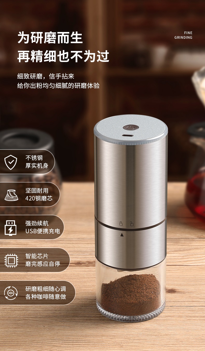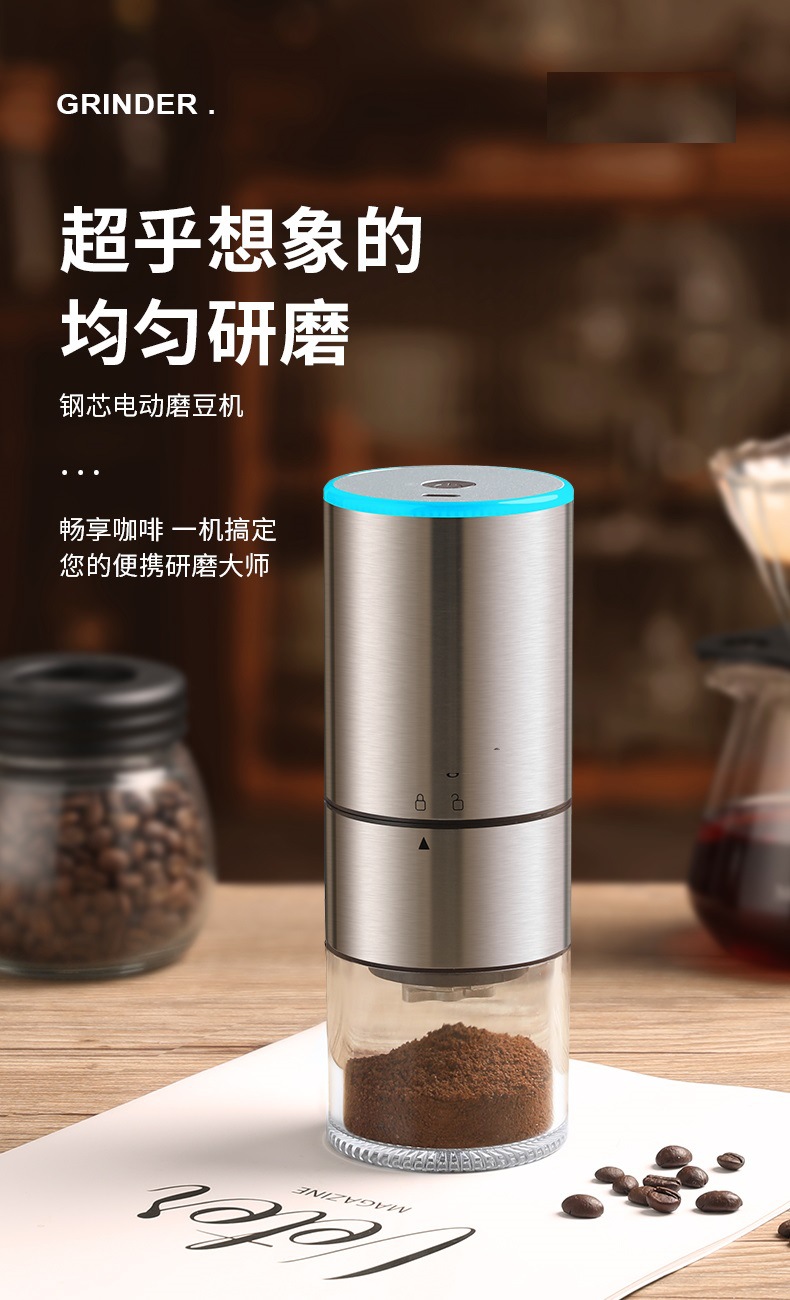电动咖啡豆研磨机充电款自动磨豆机便携咖啡磨粉机研磨器钢芯魔豆