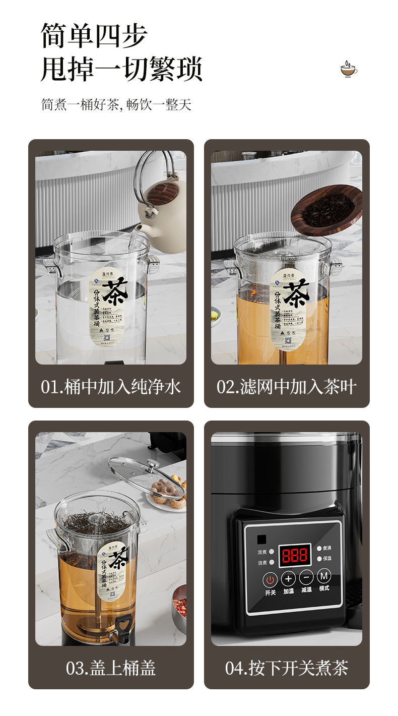 意创商用萃茶桶智能泡茶桶大容量煮茶器电热煮茶桶保温桶分体式