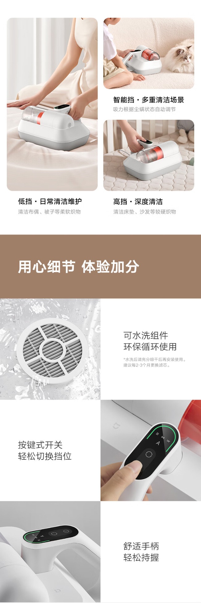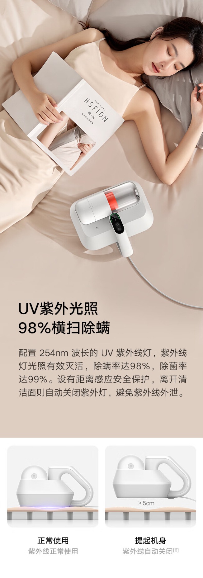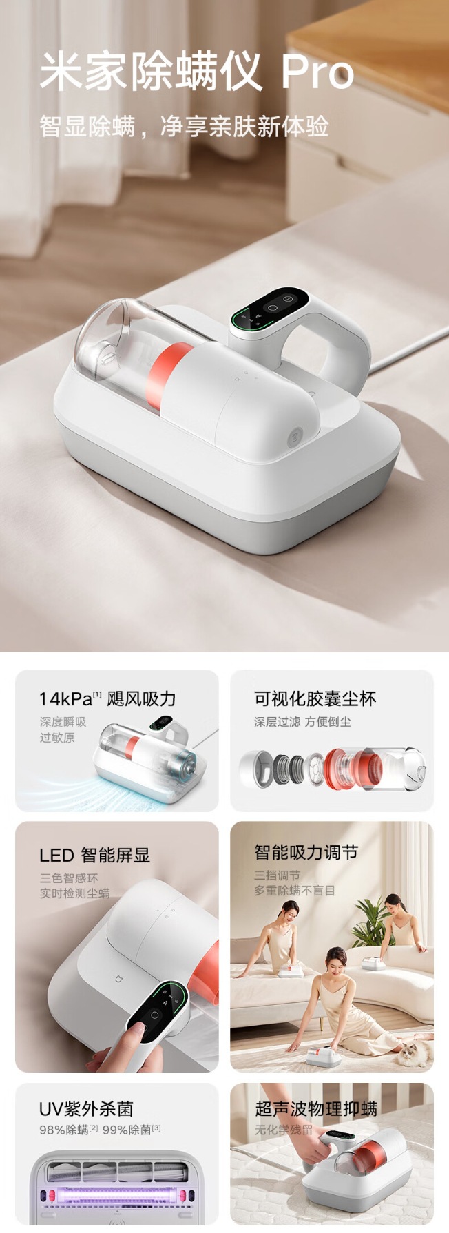 小米米家除螨仪Pro家用超声波物理抑螨大吸力UV紫外线杀菌除螨仪