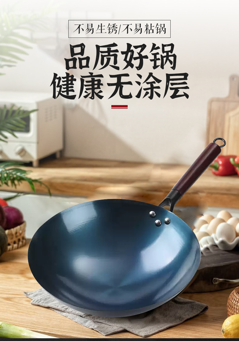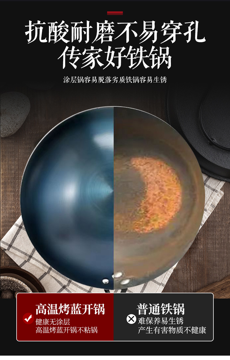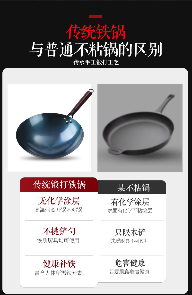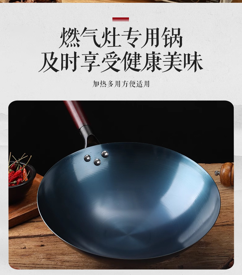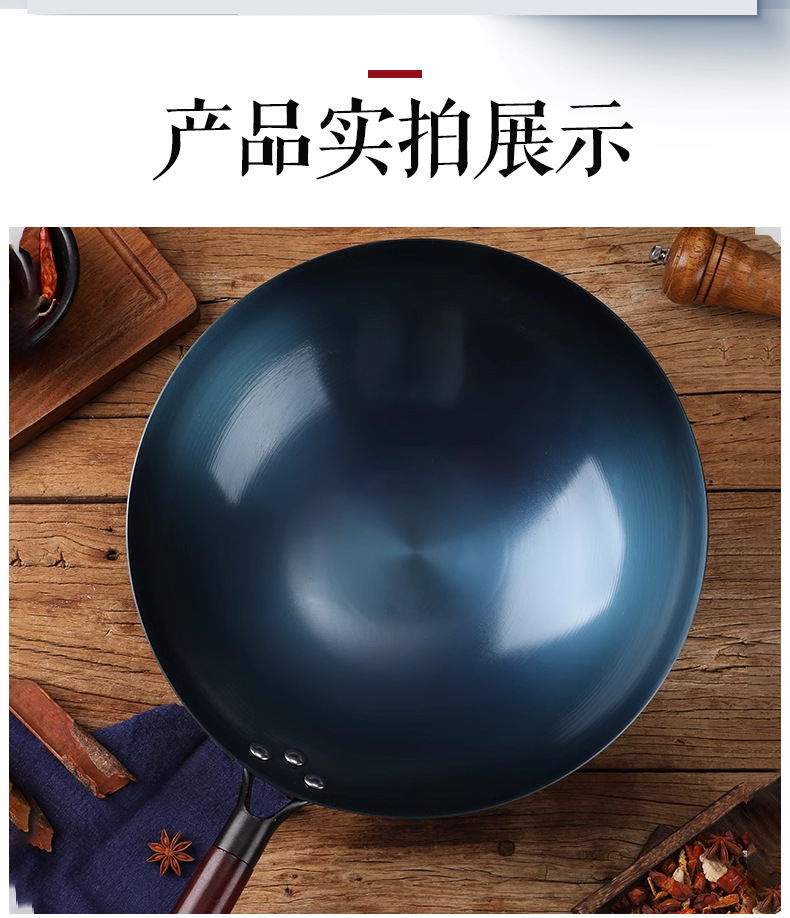 舌尖同款铁锅圆底锅炒锅锻打铁锅老式铁锅家用无涂层炒菜锅不粘锅