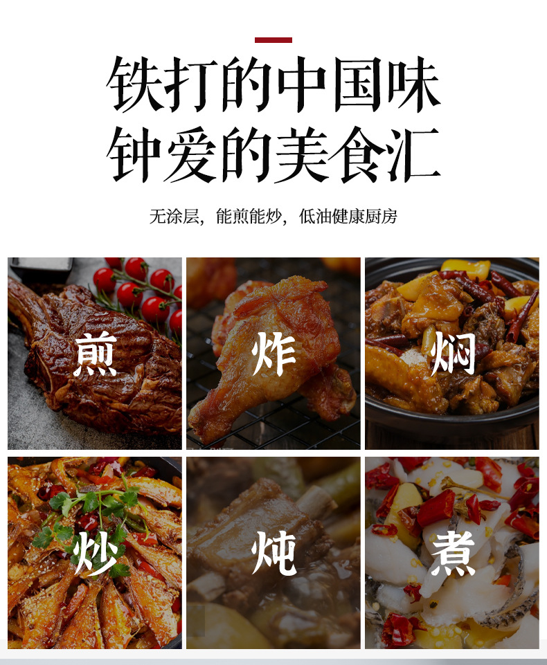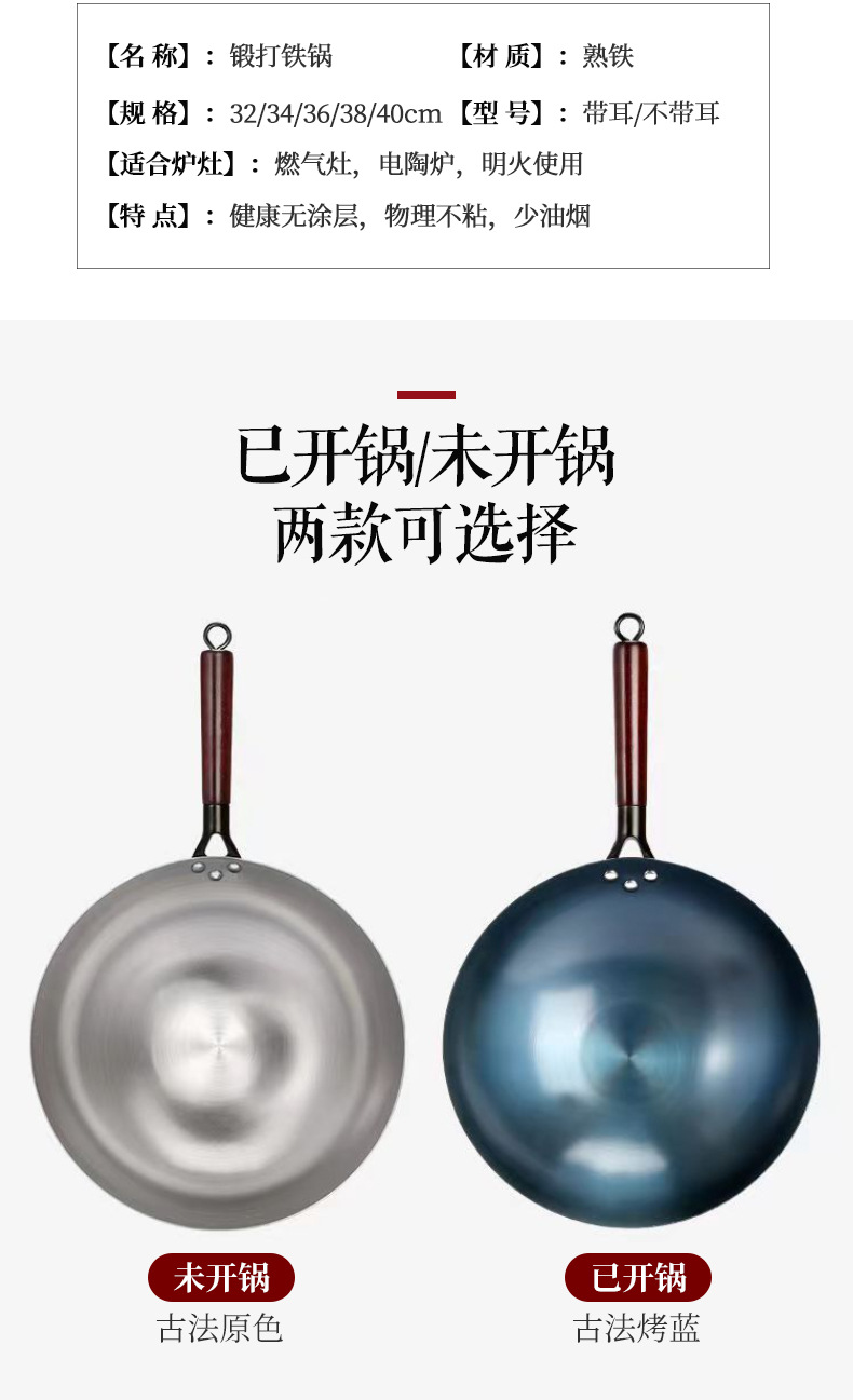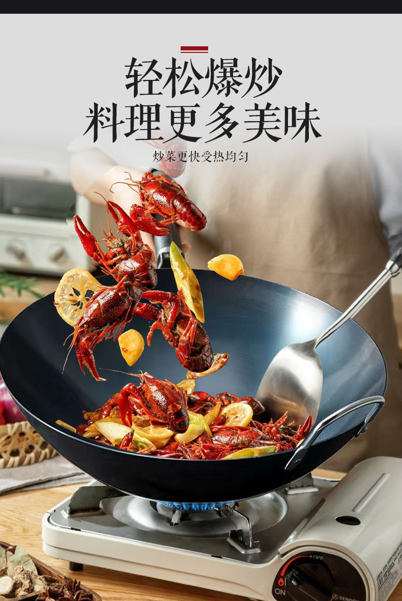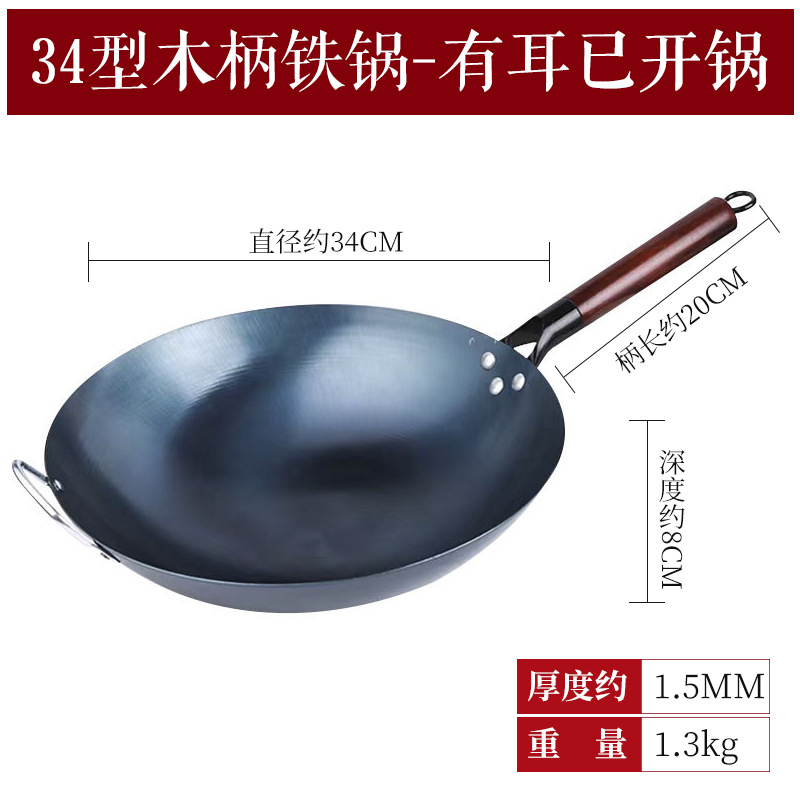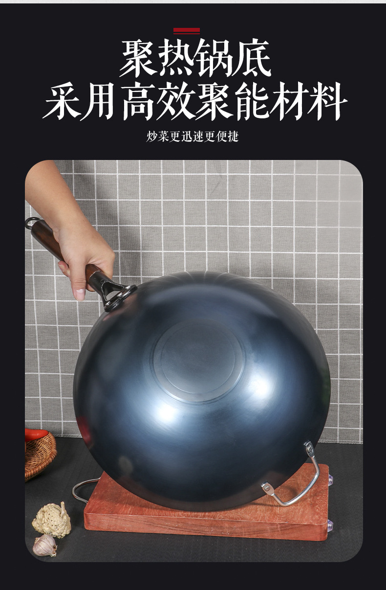 舌尖同款铁锅圆底锅炒锅锻打铁锅老式铁锅家用无涂层炒菜锅不粘锅