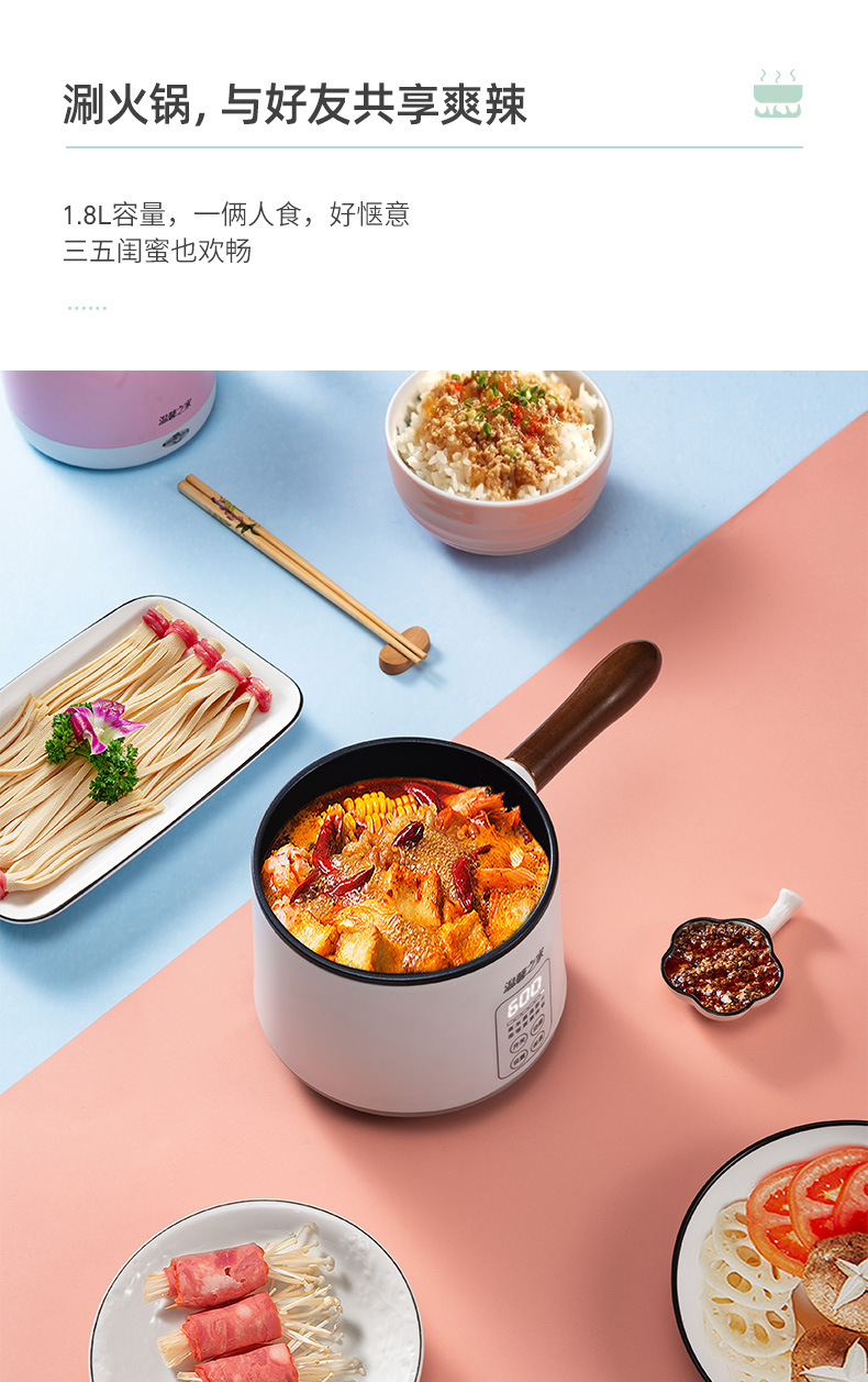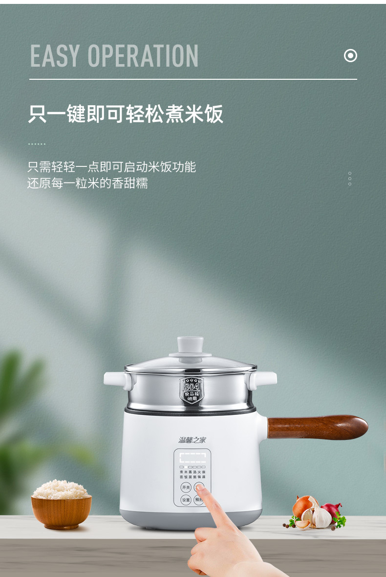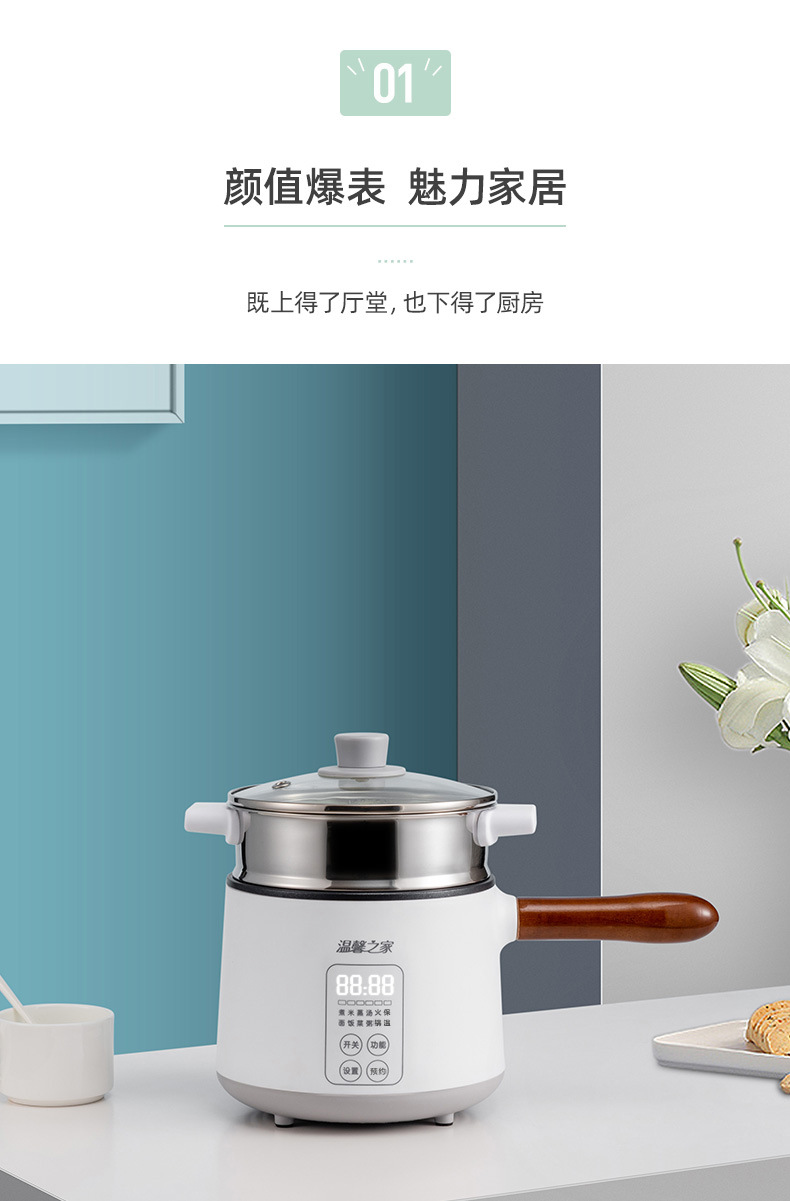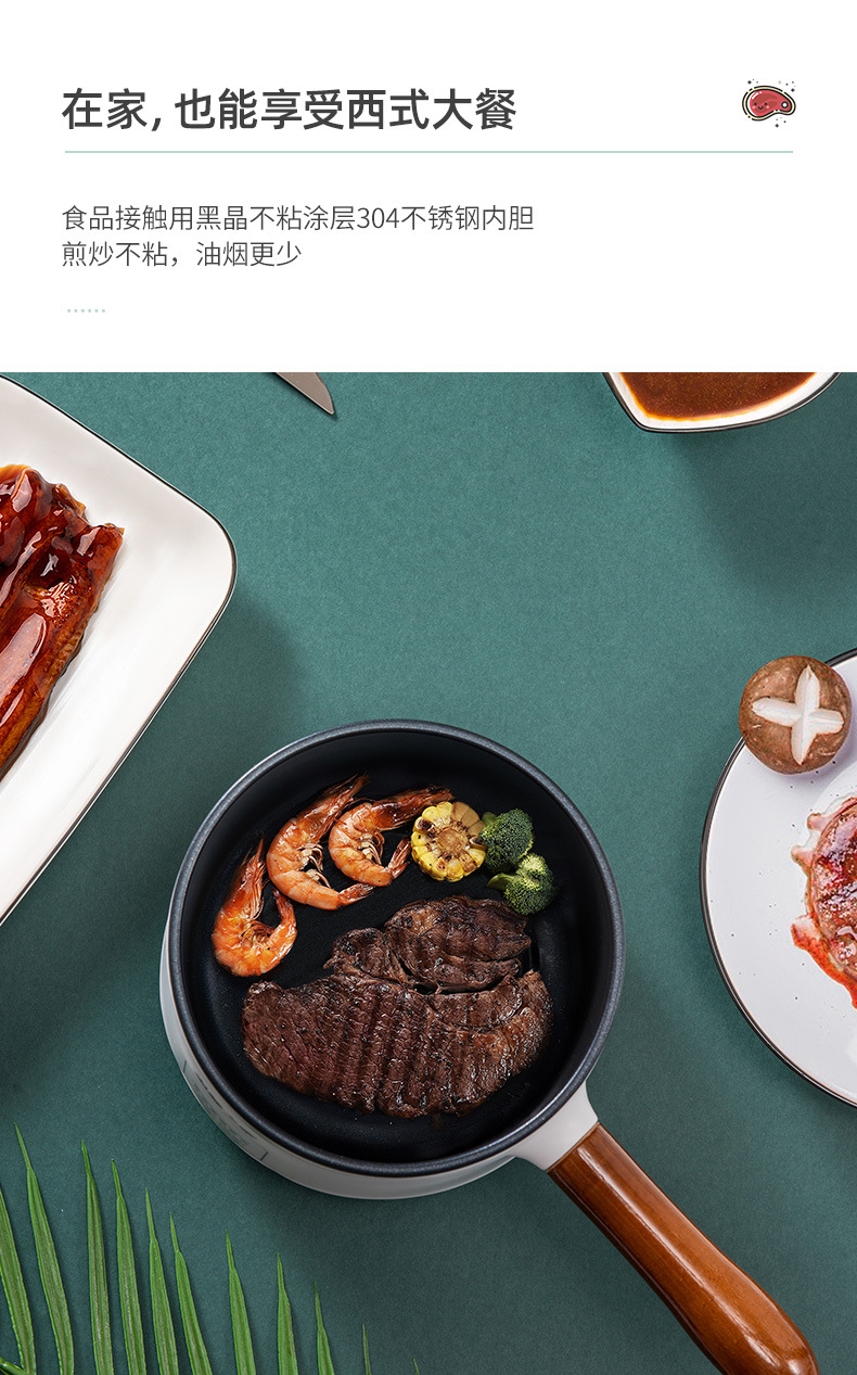 唐风学生宿舍办公蒸煮用多功能一体煮面锅迷你电煮锅带不锈钢蒸笼
