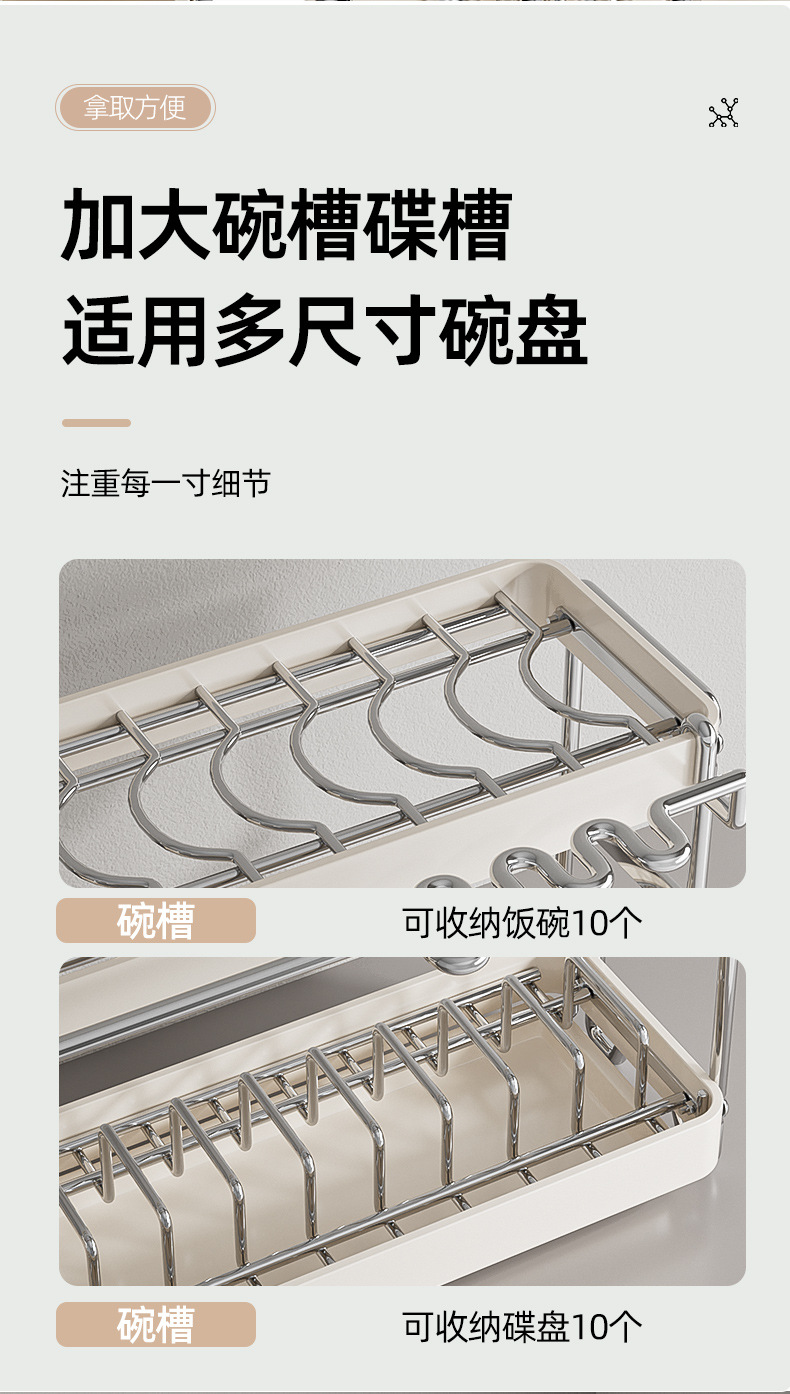 不锈钢碗架碗沥水架收纳碗碟抹布架置物架厨房碗盘筷子架碗碟架盘