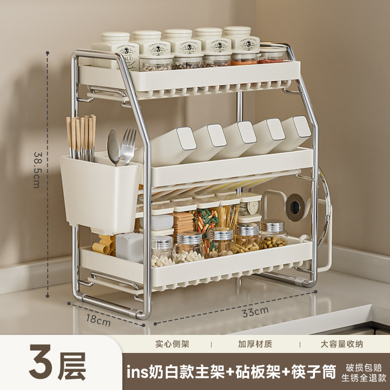 代发奶白厨房卡扣调料架置物架调料调味罐台面筷筒菜板收纳架