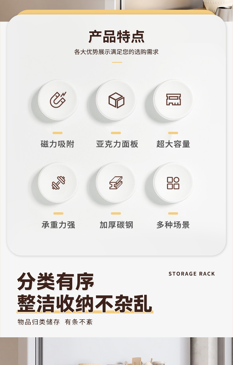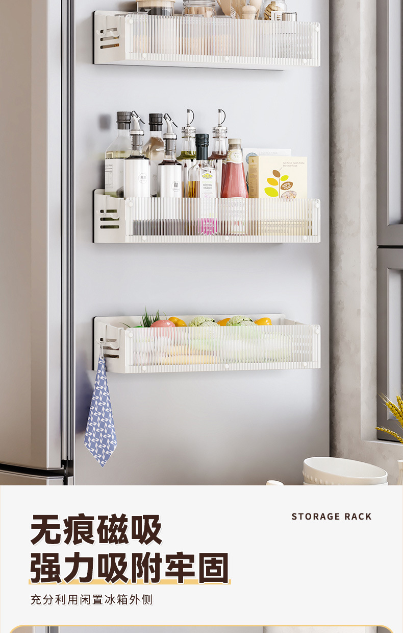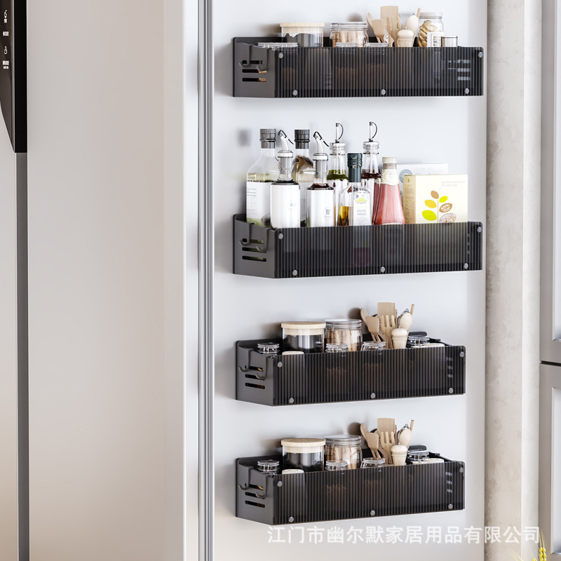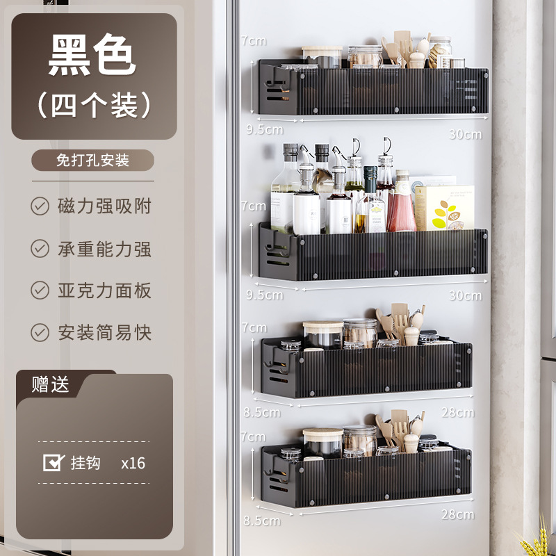 亚马逊厨房亚克力冰箱磁吸置物架侧面收纳盒磁铁壁挂式调料架子