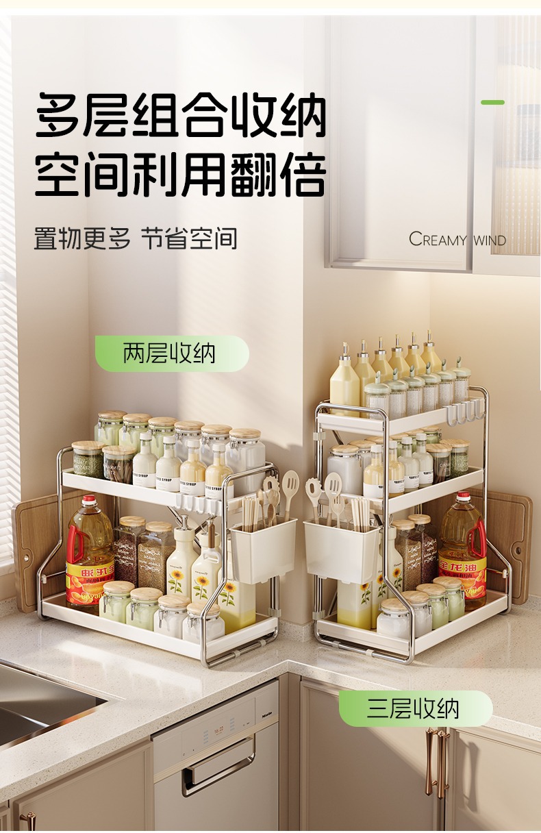 新款厨房调料品置物架免安装调味品架子盐调味罐多功能调料置物架
