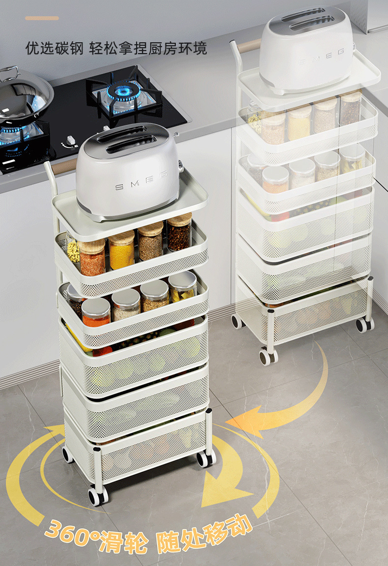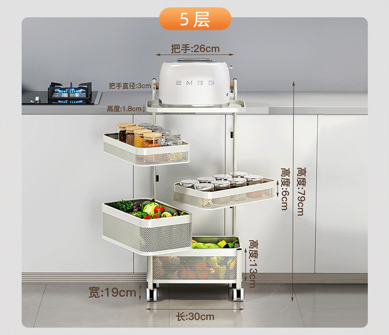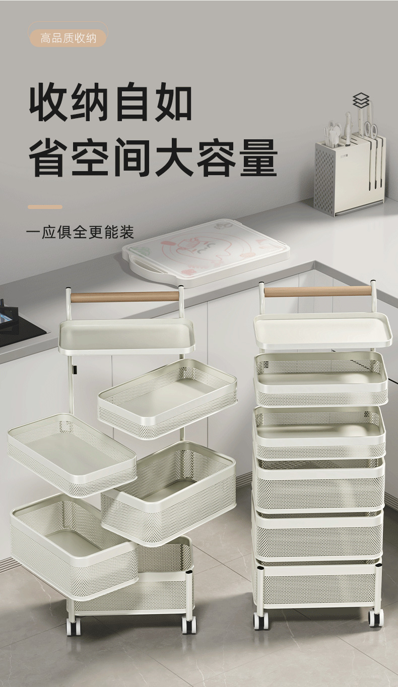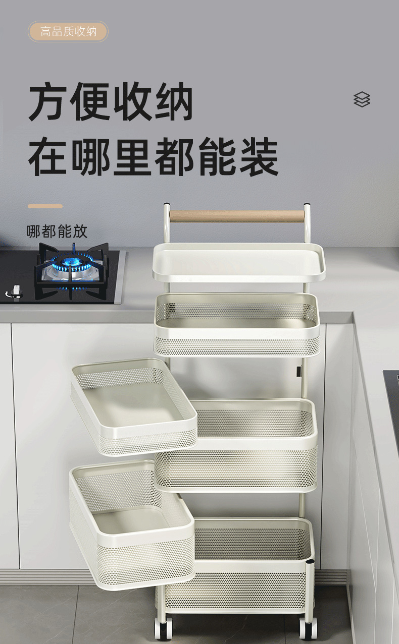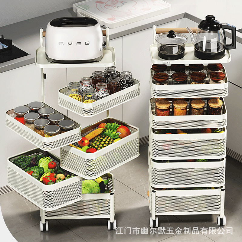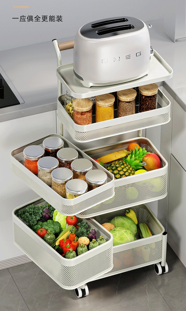 多功能厨房置物架小推车移动果蔬菜篮子多功能锅架多层落地收纳架