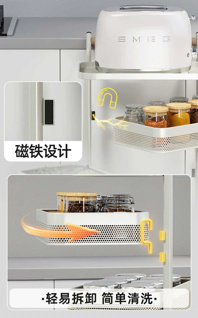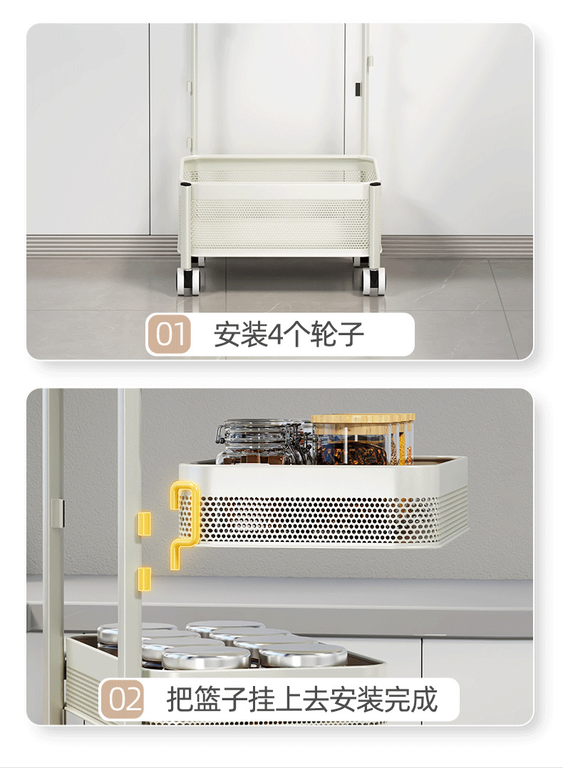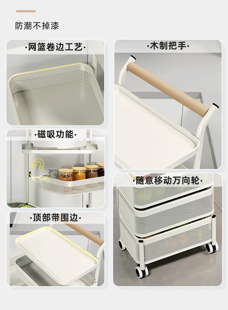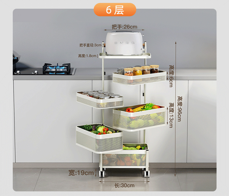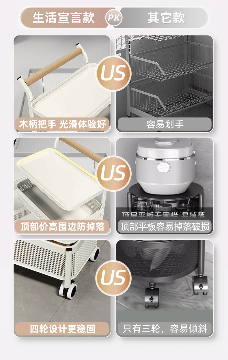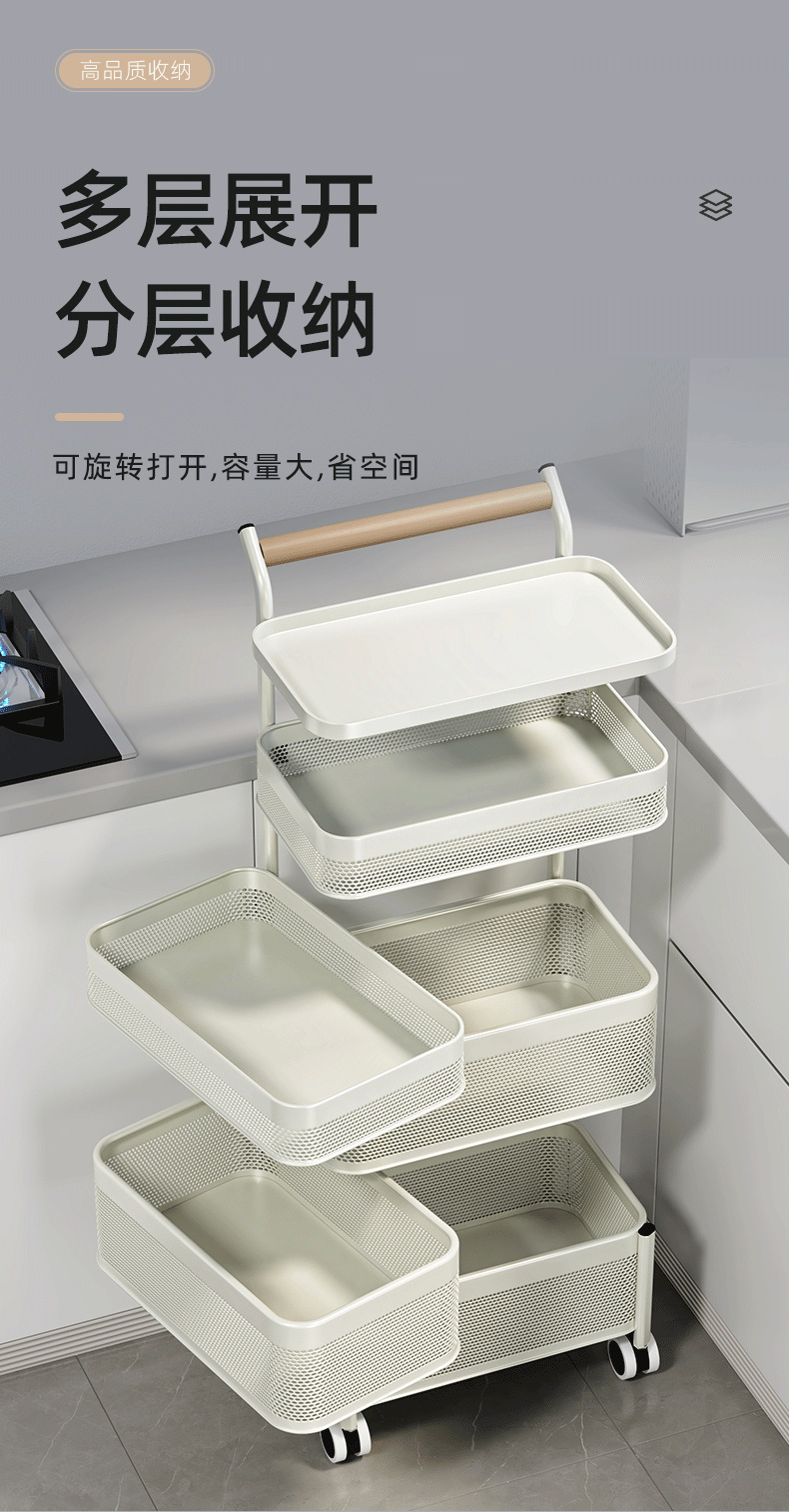 多功能厨房置物架小推车移动果蔬菜篮子多功能锅架多层落地收纳架