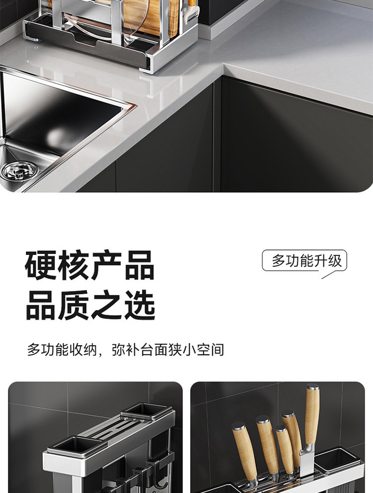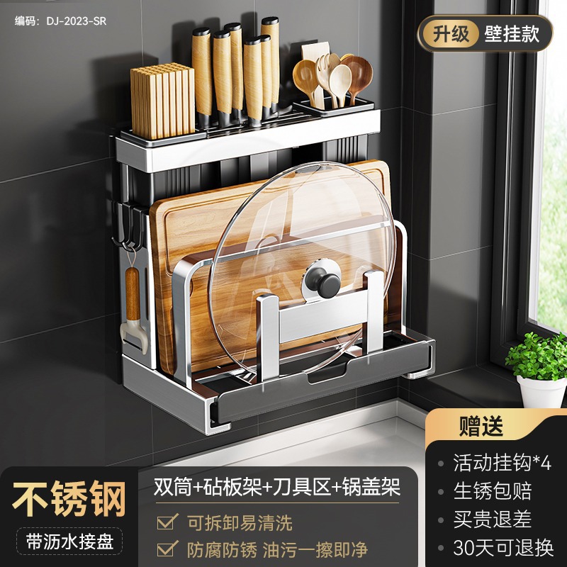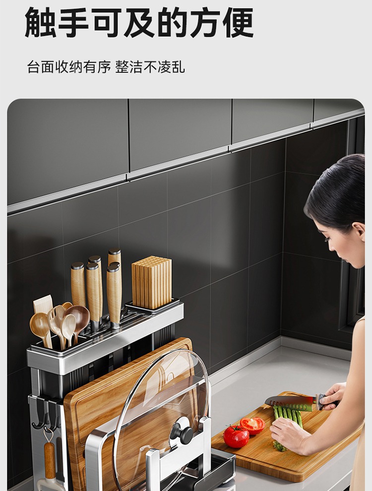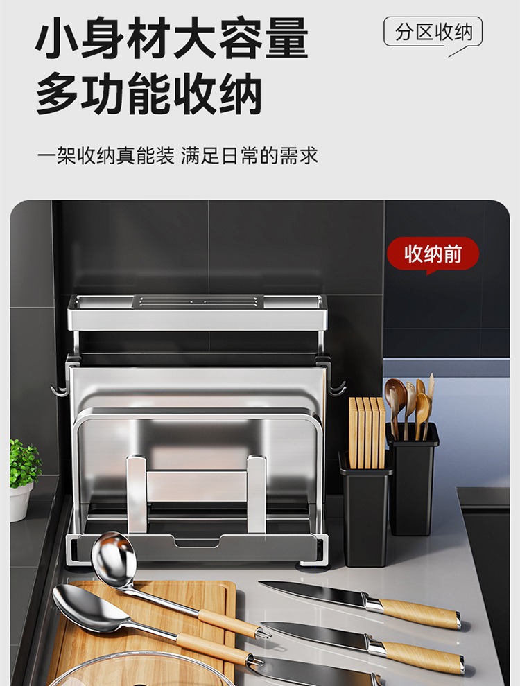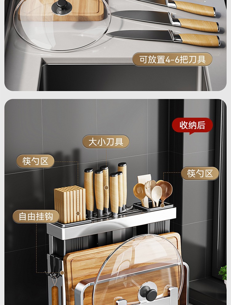 304不锈钢厨房刀架置物架砧板架一体筷子刀具收纳架置物架菜刀架
