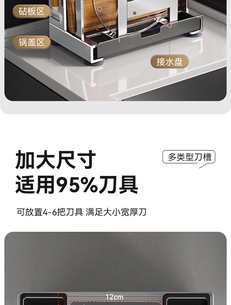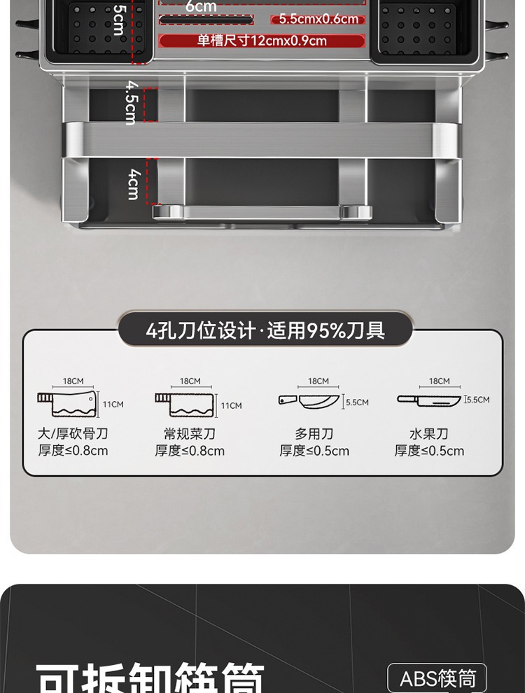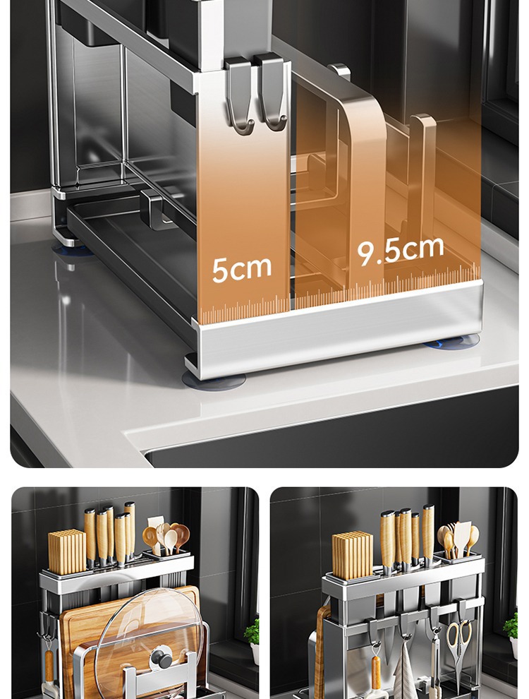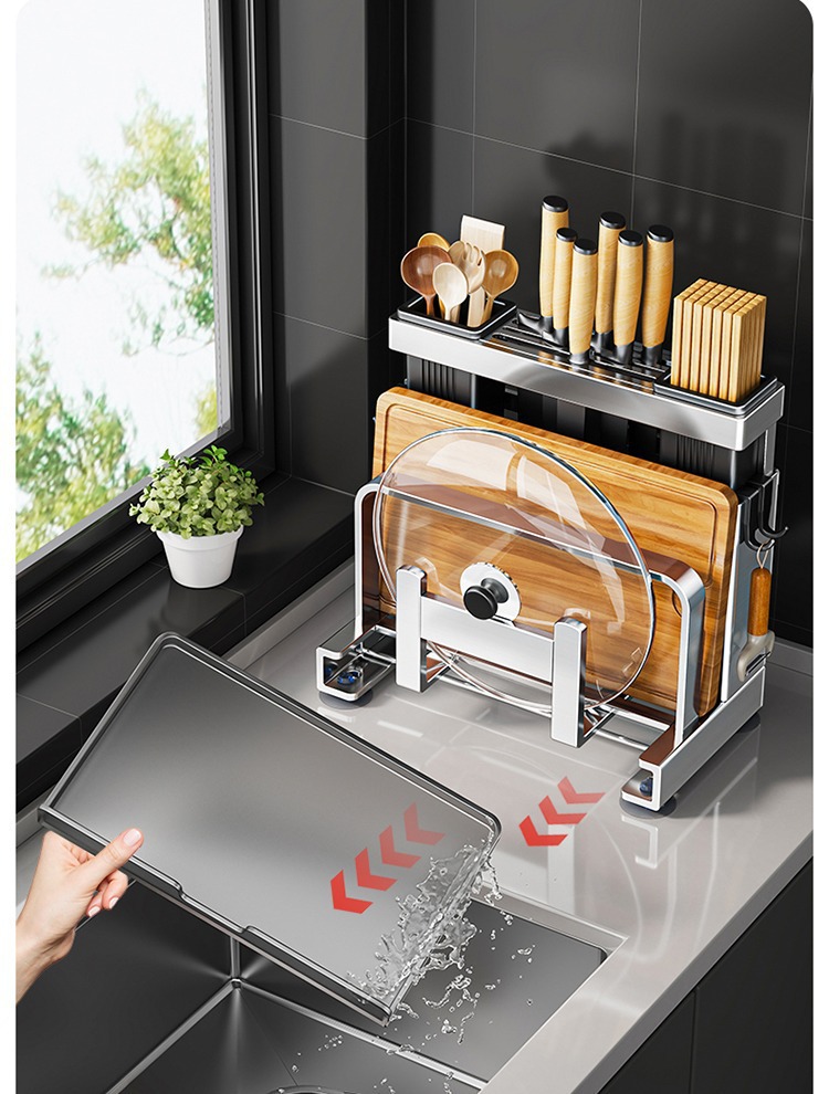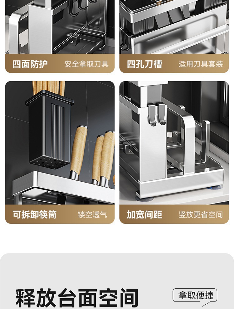 304不锈钢厨房刀架置物架砧板架一体筷子刀具收纳架置物架菜刀架