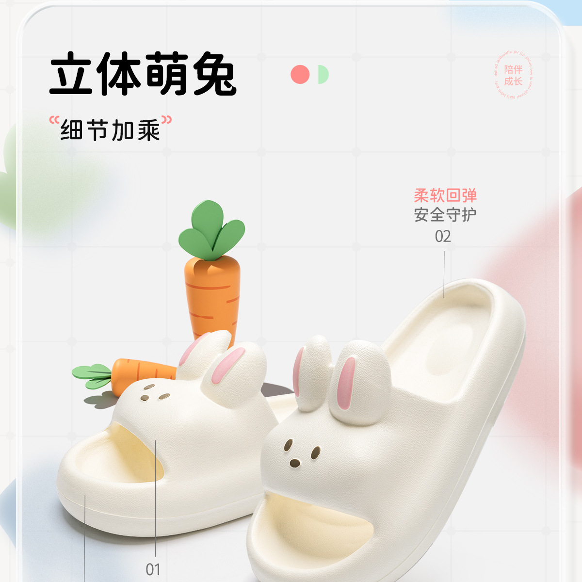 儿童拖鞋女童静音可爱踩屎感软底居家卡通兔兔防滑亲子男童凉拖鞋