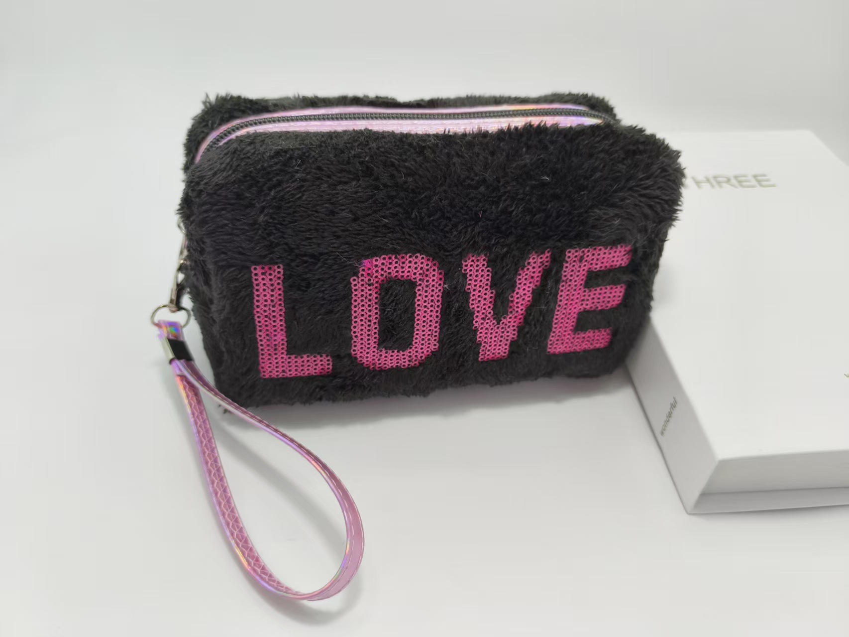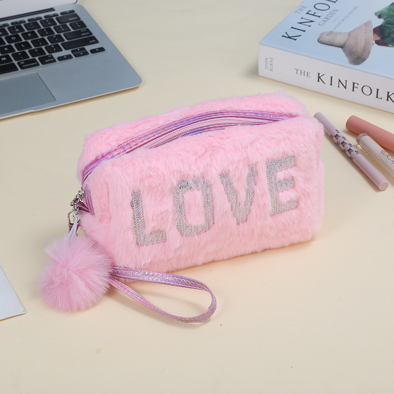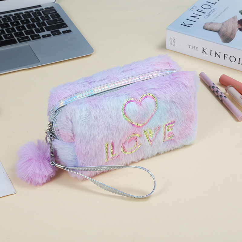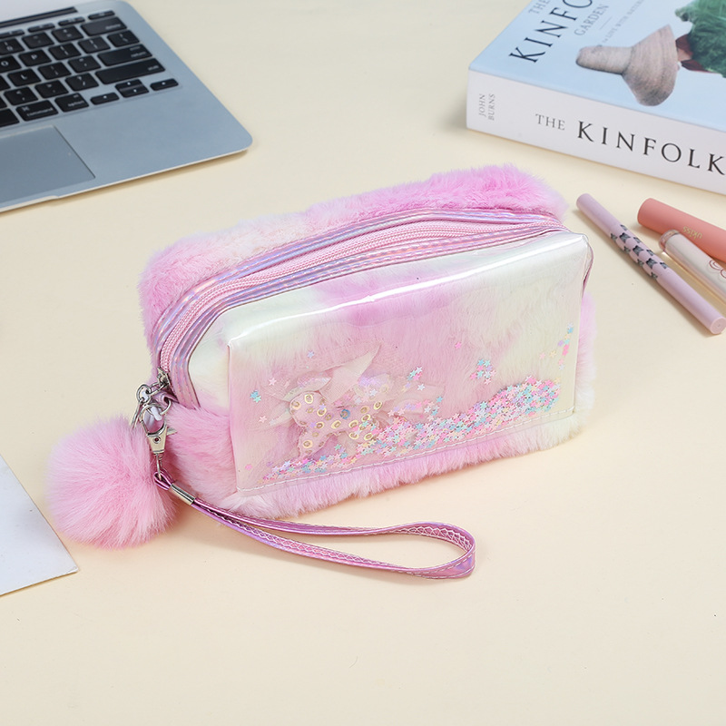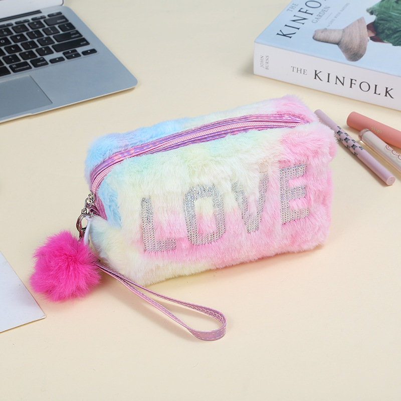 韩版独角兽印花化妆包可爱毛绒化妆品收纳包多功能便携旅游洗漱包