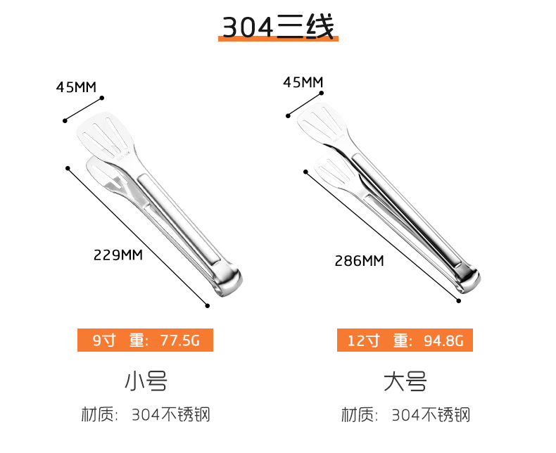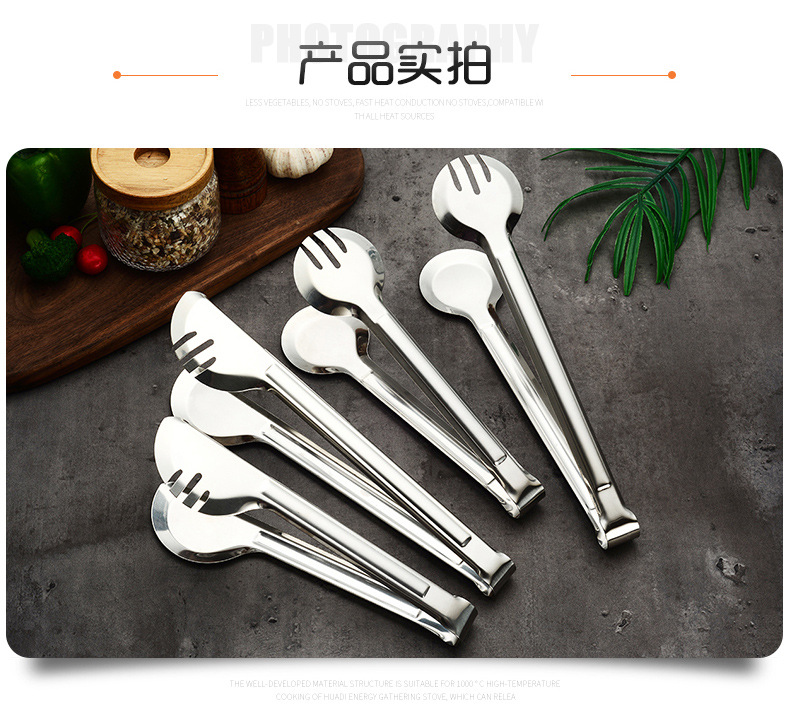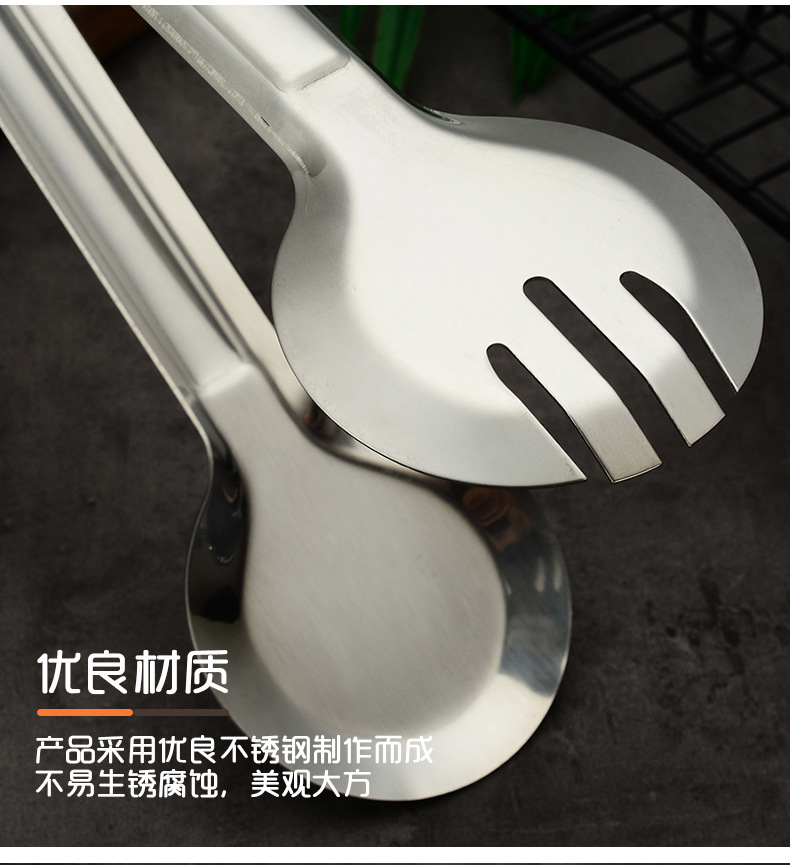 厂家批发食品 夹 不锈钢面包夹全圆半圆三线食品夹 家用食物夹