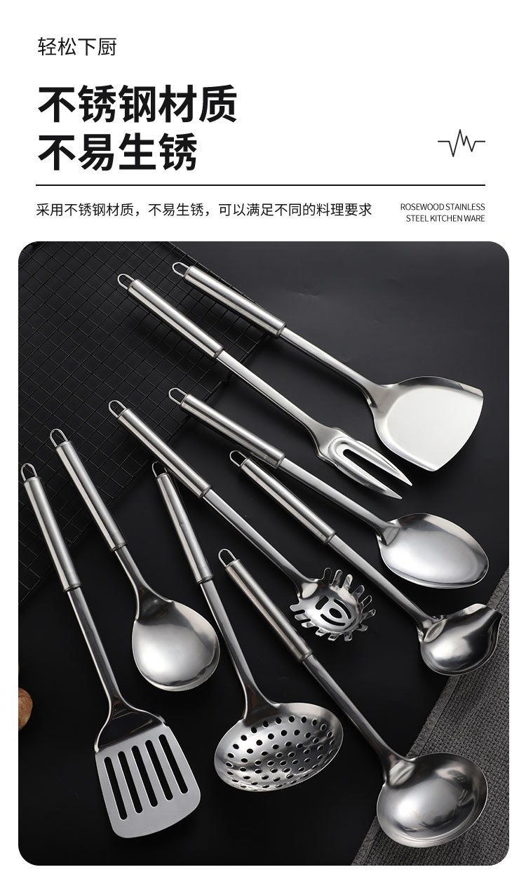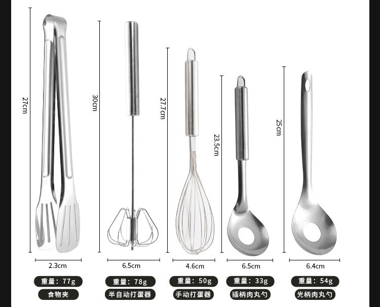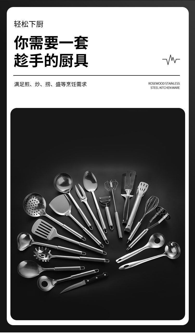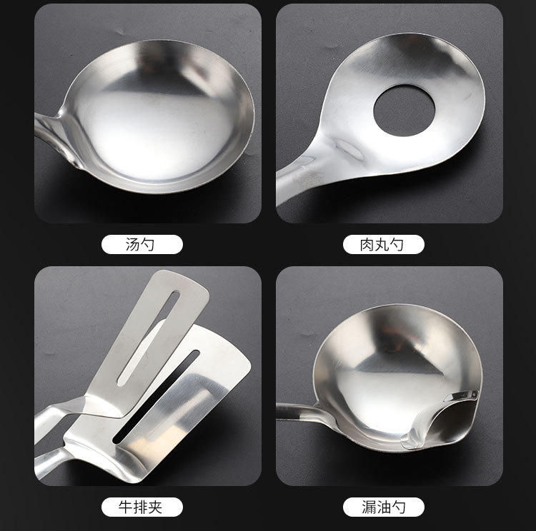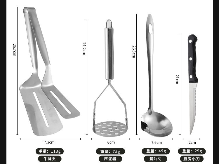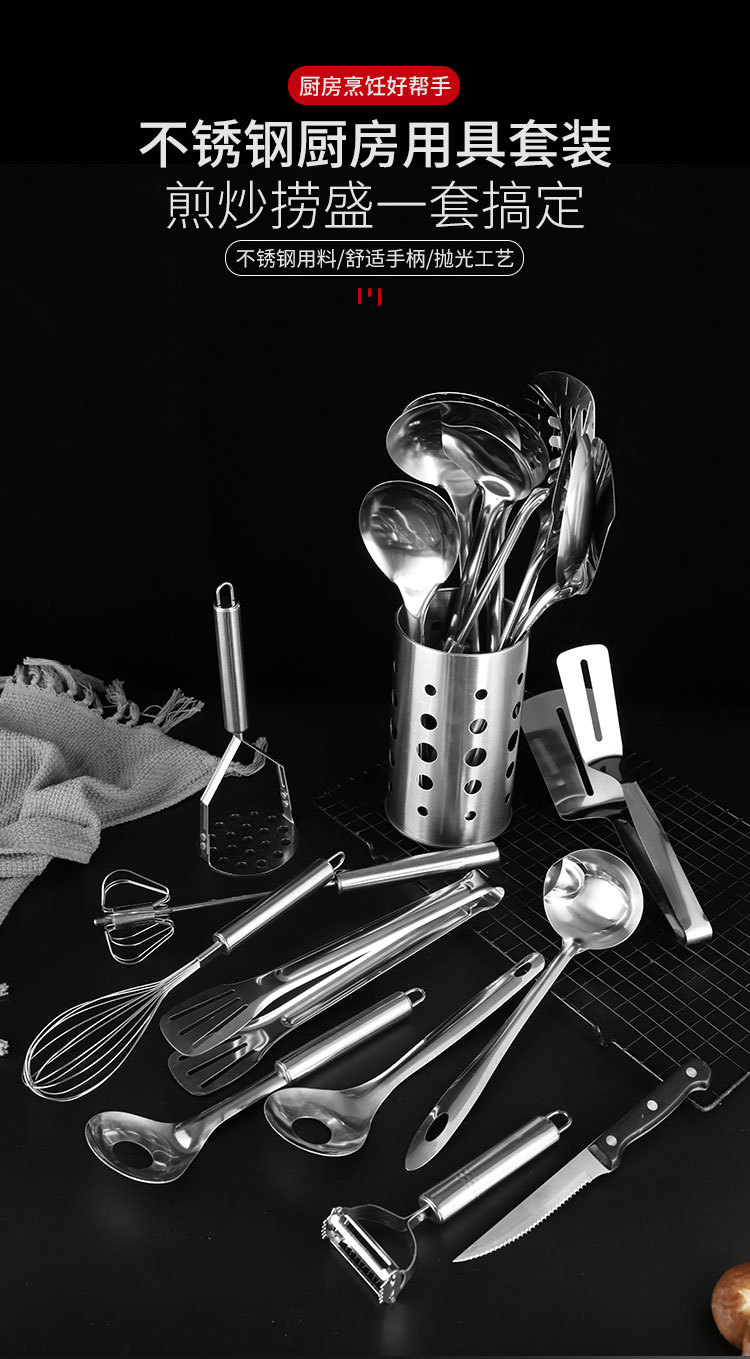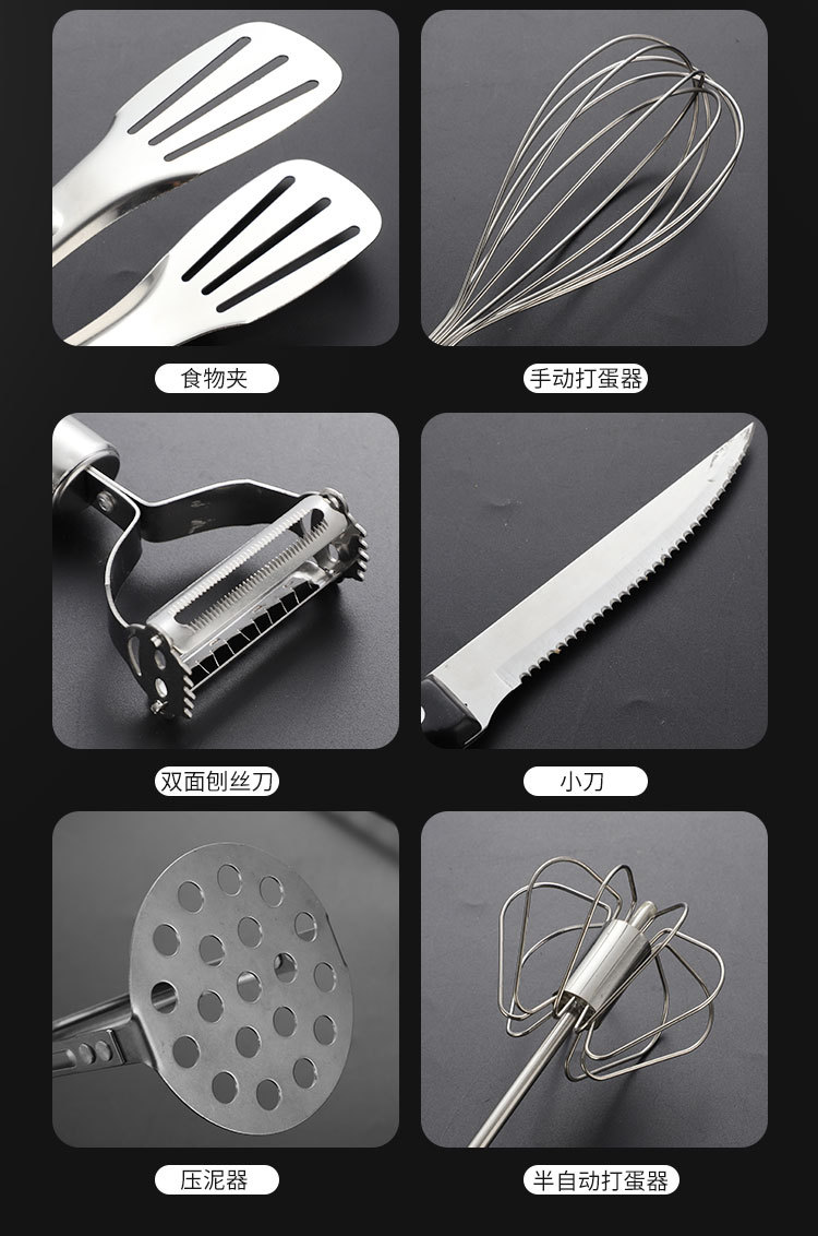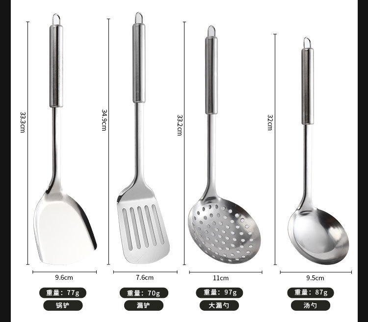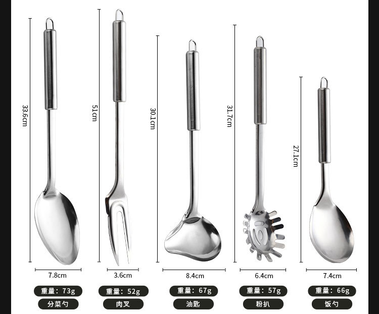 小圆管插柄不锈钢厨具套装锅铲漏勺刀叉夹打蛋器厨房小工具套装