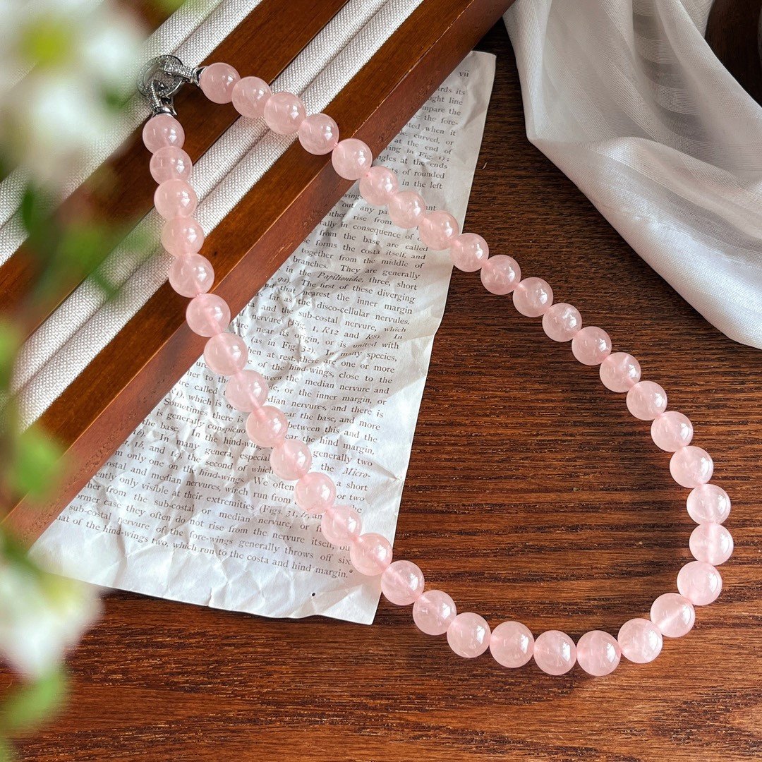 西柚粉无加色10mm天然高品质马达加斯加粉晶项链女小众时尚
