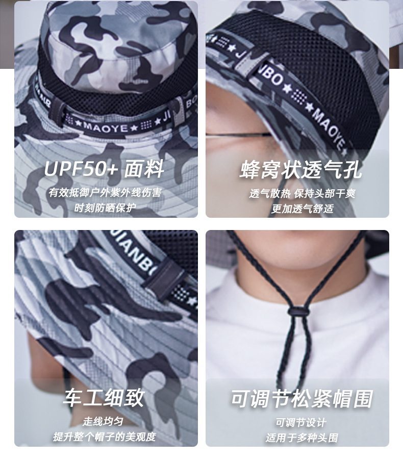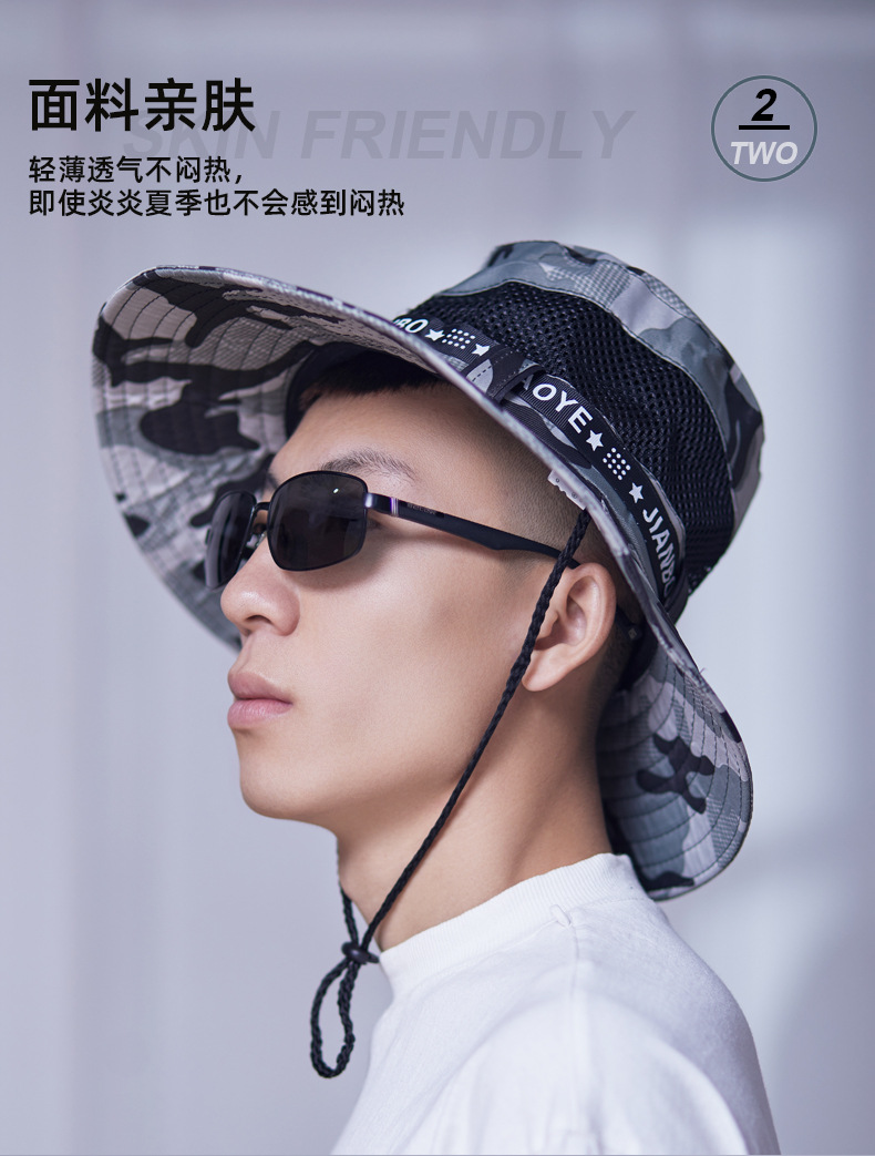 防晒帽男士夏季遮阳帽户外钓鱼帽遮脸渔夫帽防紫外线农活太阳帽子