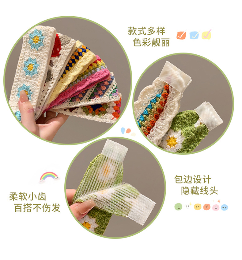 法式复古针织魔术贴儿童2025新款碎发整理神器发箍甜美女童发带