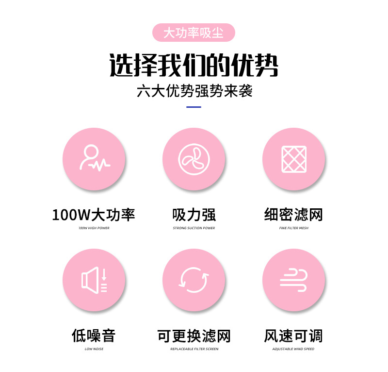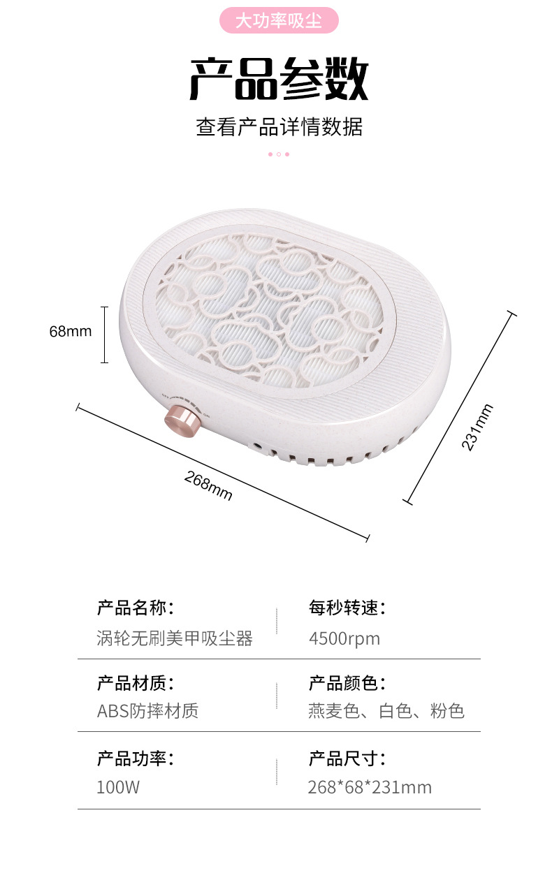 100W低噪音涡轮无刷美甲吸尘器插电款涡轮增压大吸力美甲集尘器