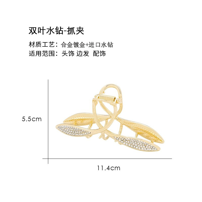 新款法式头饰女水钻叶子抓夹鲨鱼夹