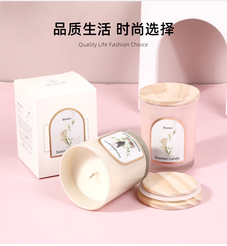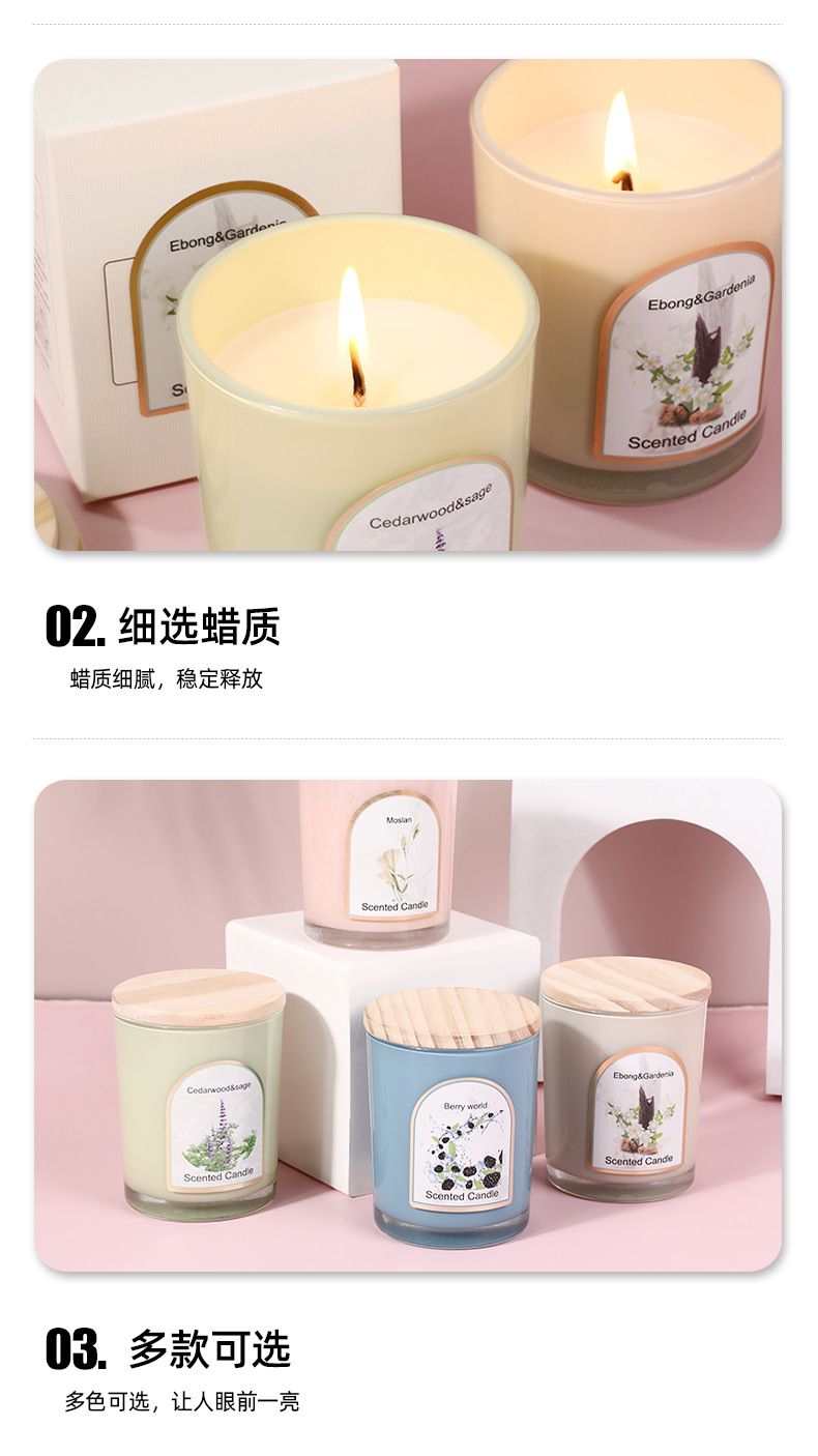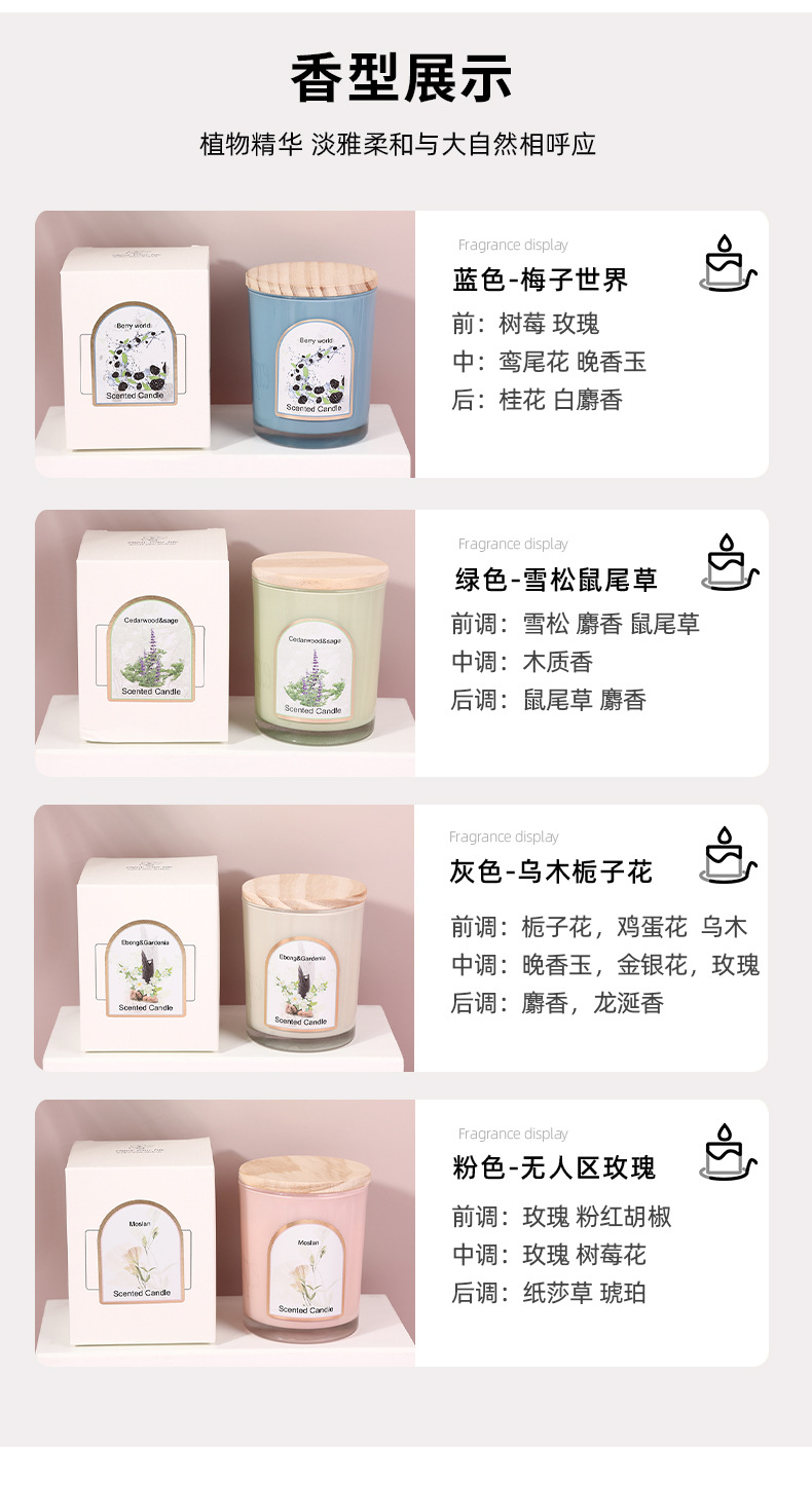 木盖彩色玻璃杯香薰蜡烛批发定制家用香氛蜡烛摆件结婚伴手礼跨境