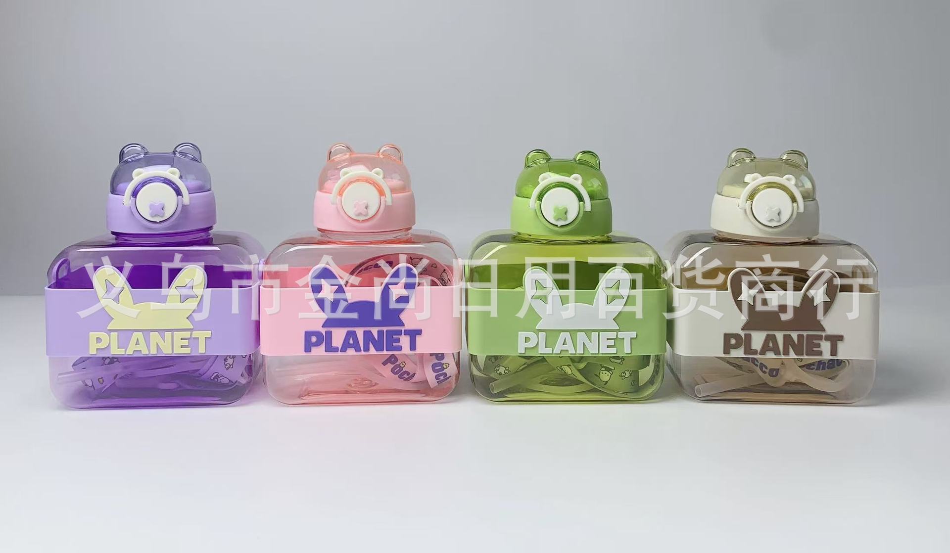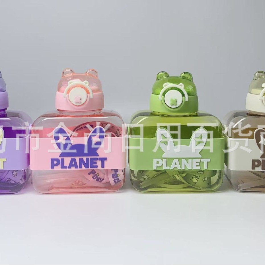 批发新款弹跳塑料水杯卡通可爱儿童便携吸管杯户外大容量运动水杯