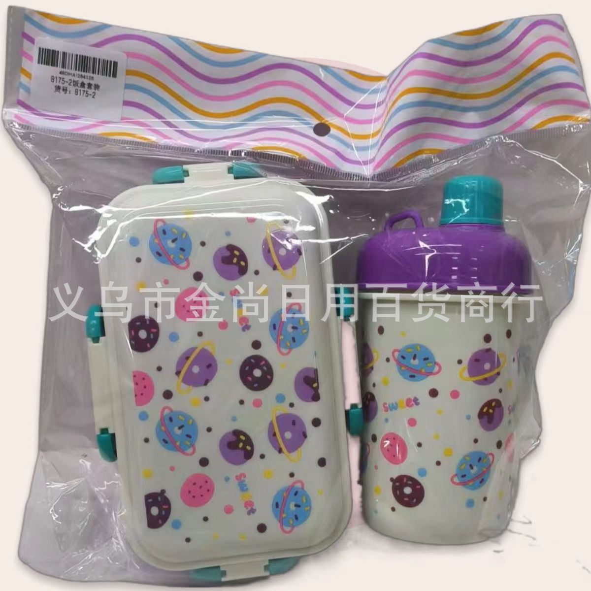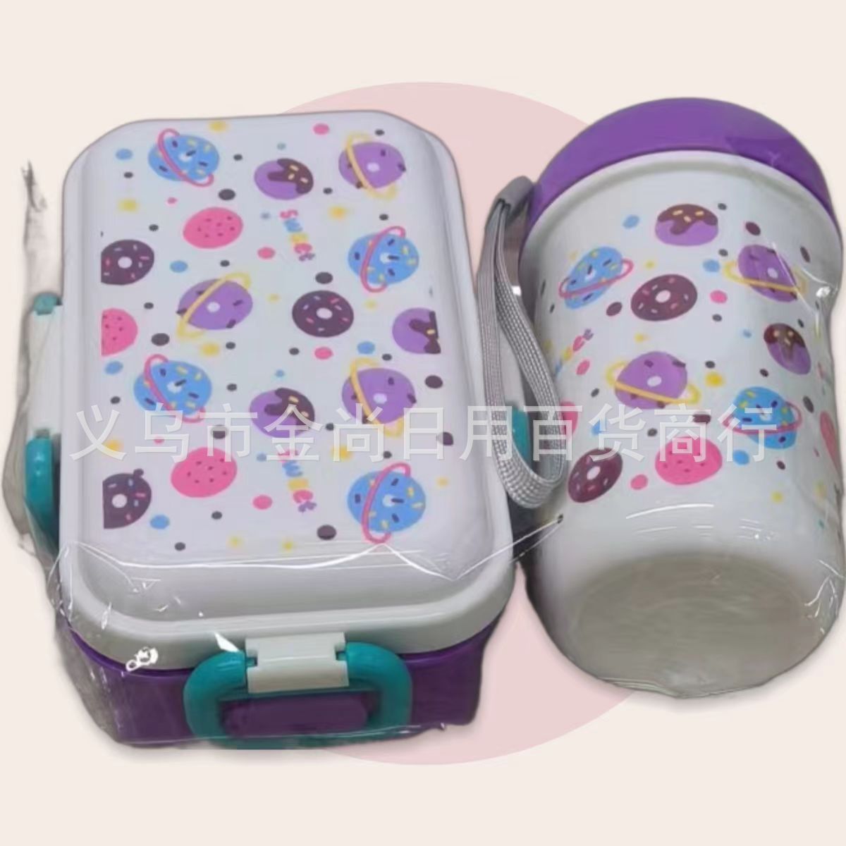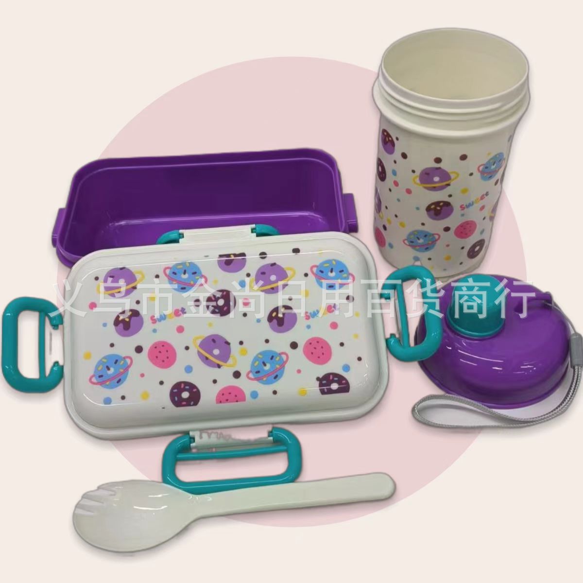 批发甜甜圈可爱塑料可爱饭盒男女饭盒套装加叉加勺儿童卡通饭盒