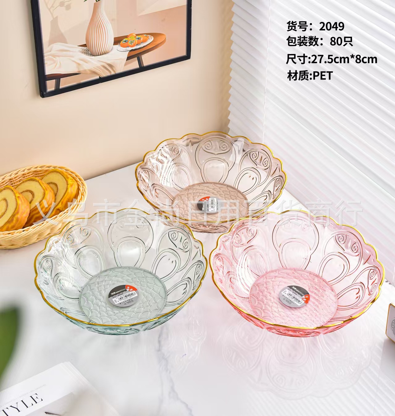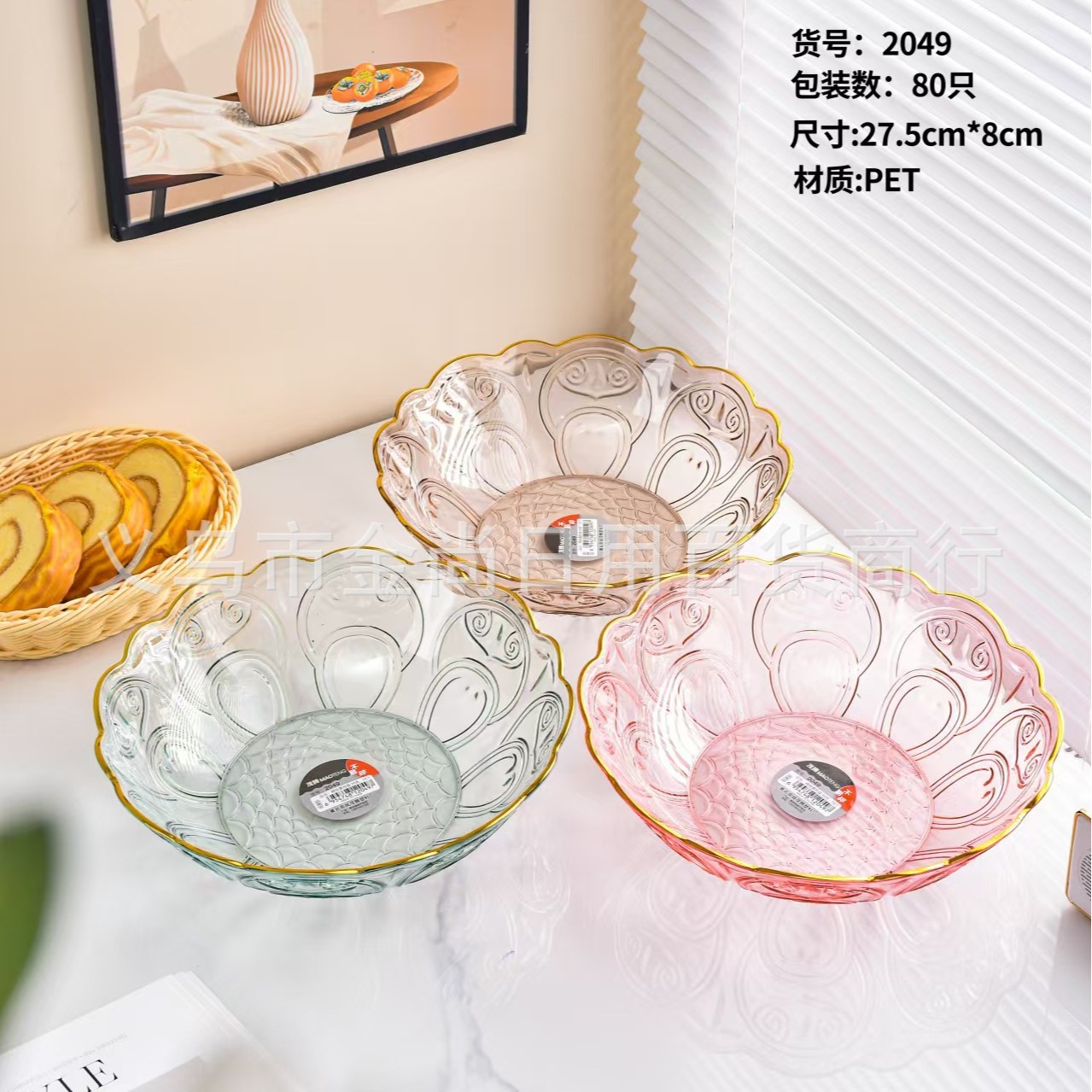 透明轻奢PET圆形果盘金边提手水果盘客厅茶几零食盘子坚果盘批发