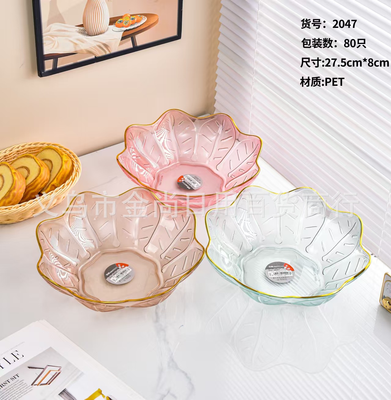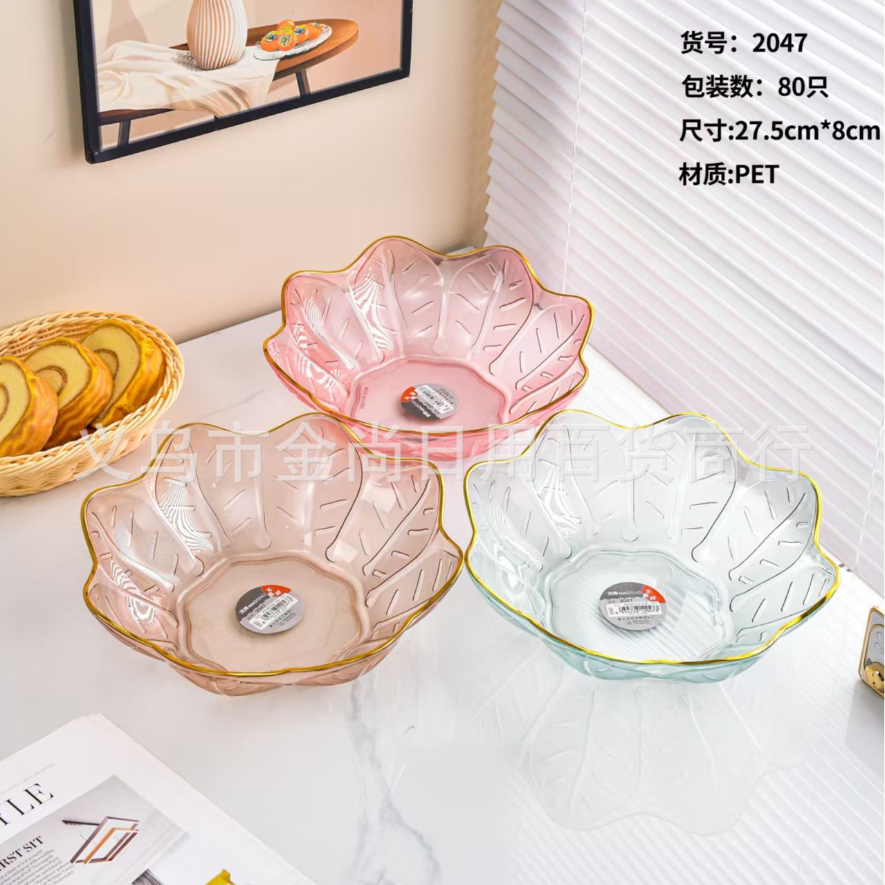 批发PET轻奢透明圆形果盘金边提手水果盘客厅茶几零食盘子坚果盘