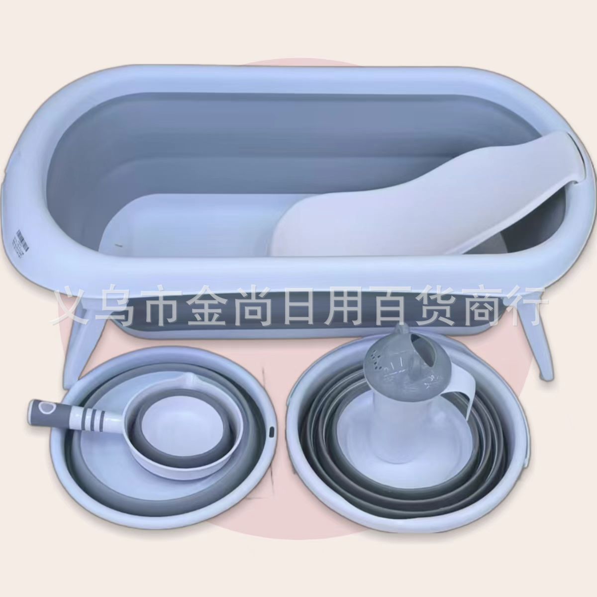 跨境感温婴儿折叠浴盆套装宝宝洗澡桶6件套 Baby bathtub 6 set
