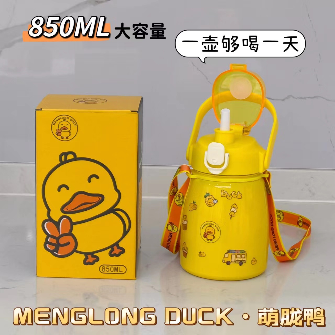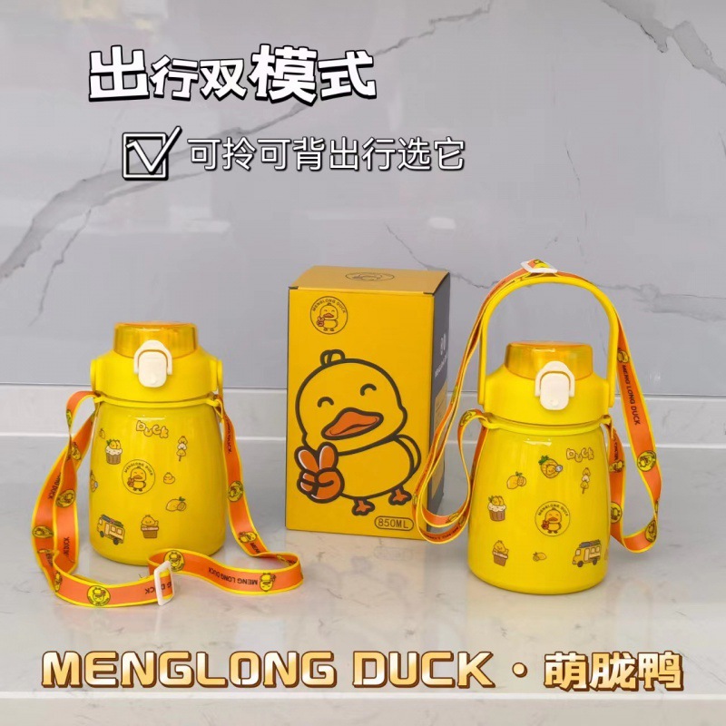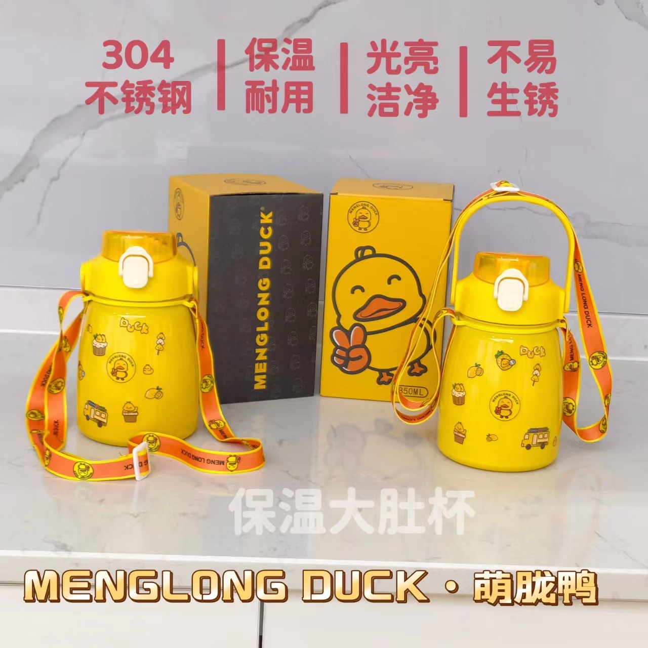 网红大肚杯保温杯304不锈钢保温壶家用水杯可手提带背带水壶批发