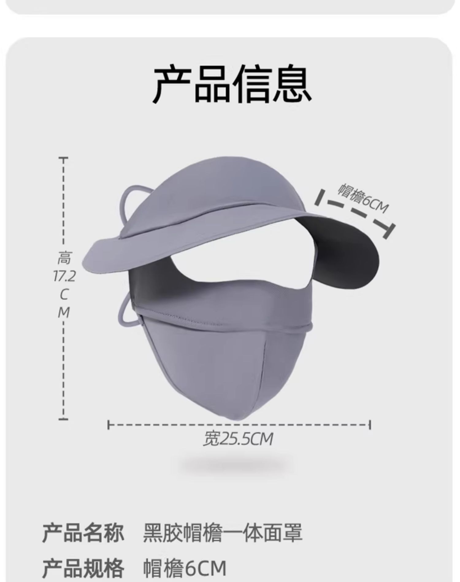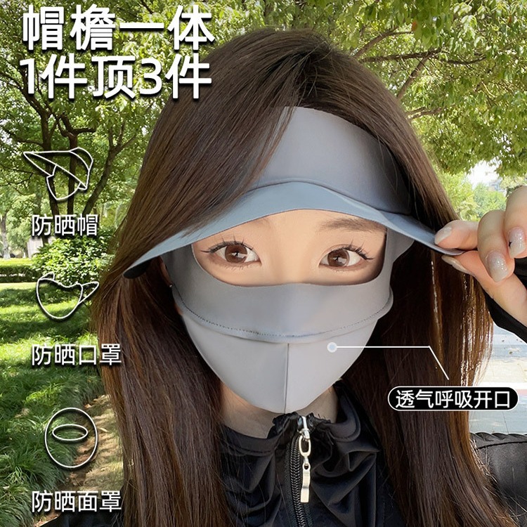 同款防晒口罩脸基尼黑胶帽檐全脸防紫外线立体冰丝防晒面罩