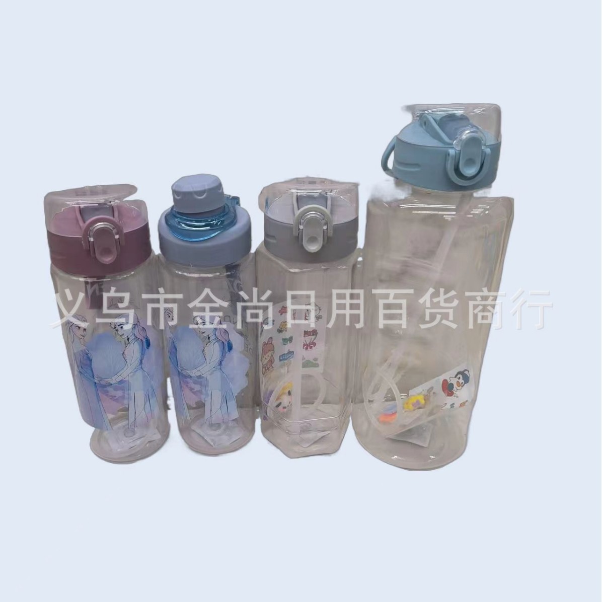 户外简约透明吸管杯卡通塑料杯创意小学生吸管塑料水杯