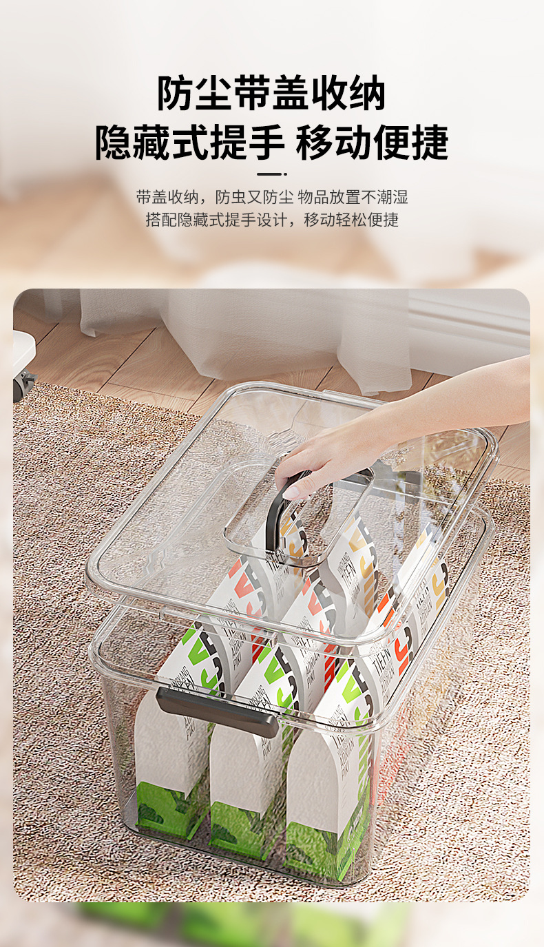 手提便携式透明收纳箱书本收纳盒玩具杂物整理箱加厚PET储物箱