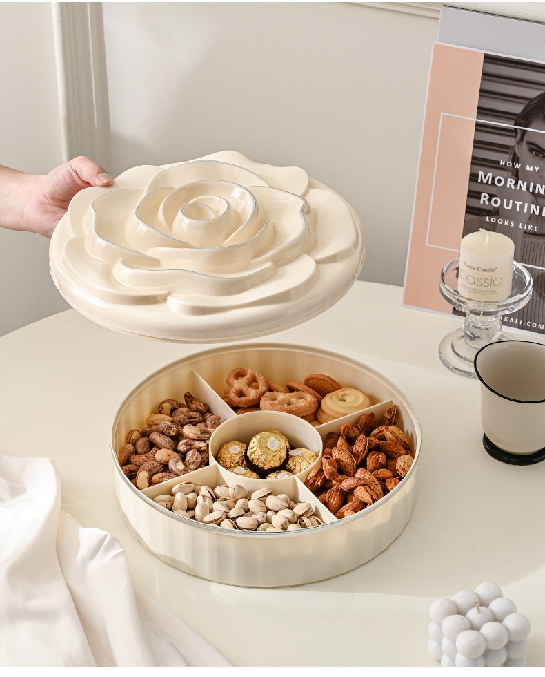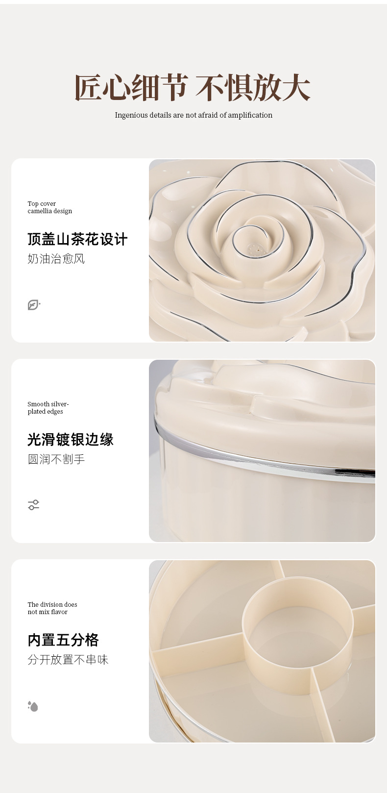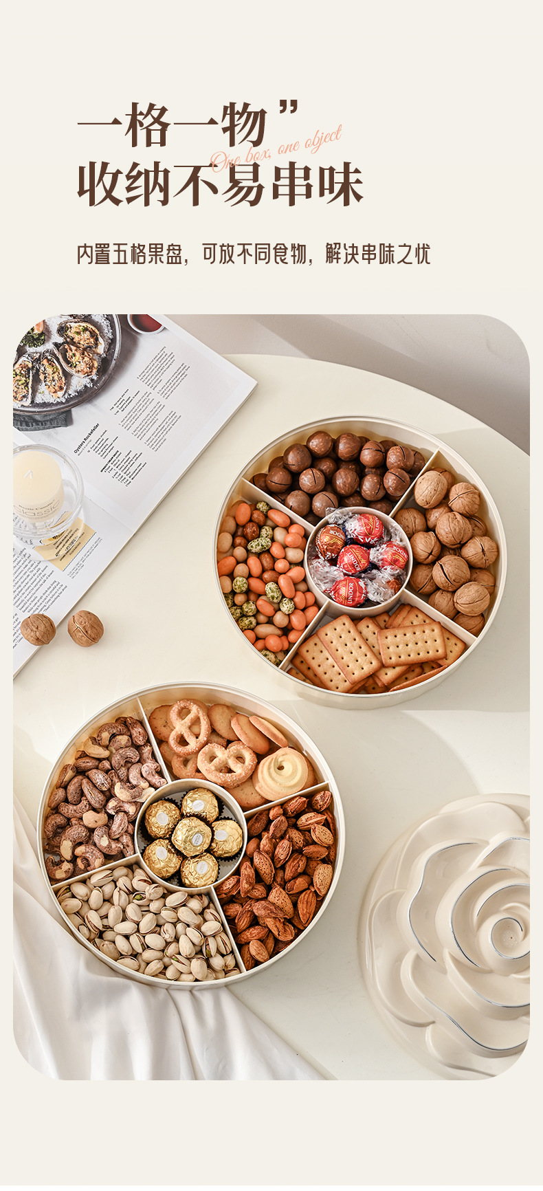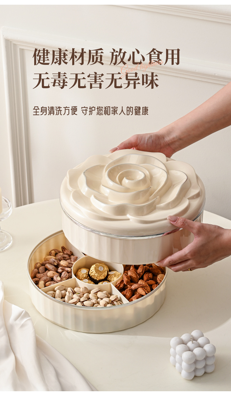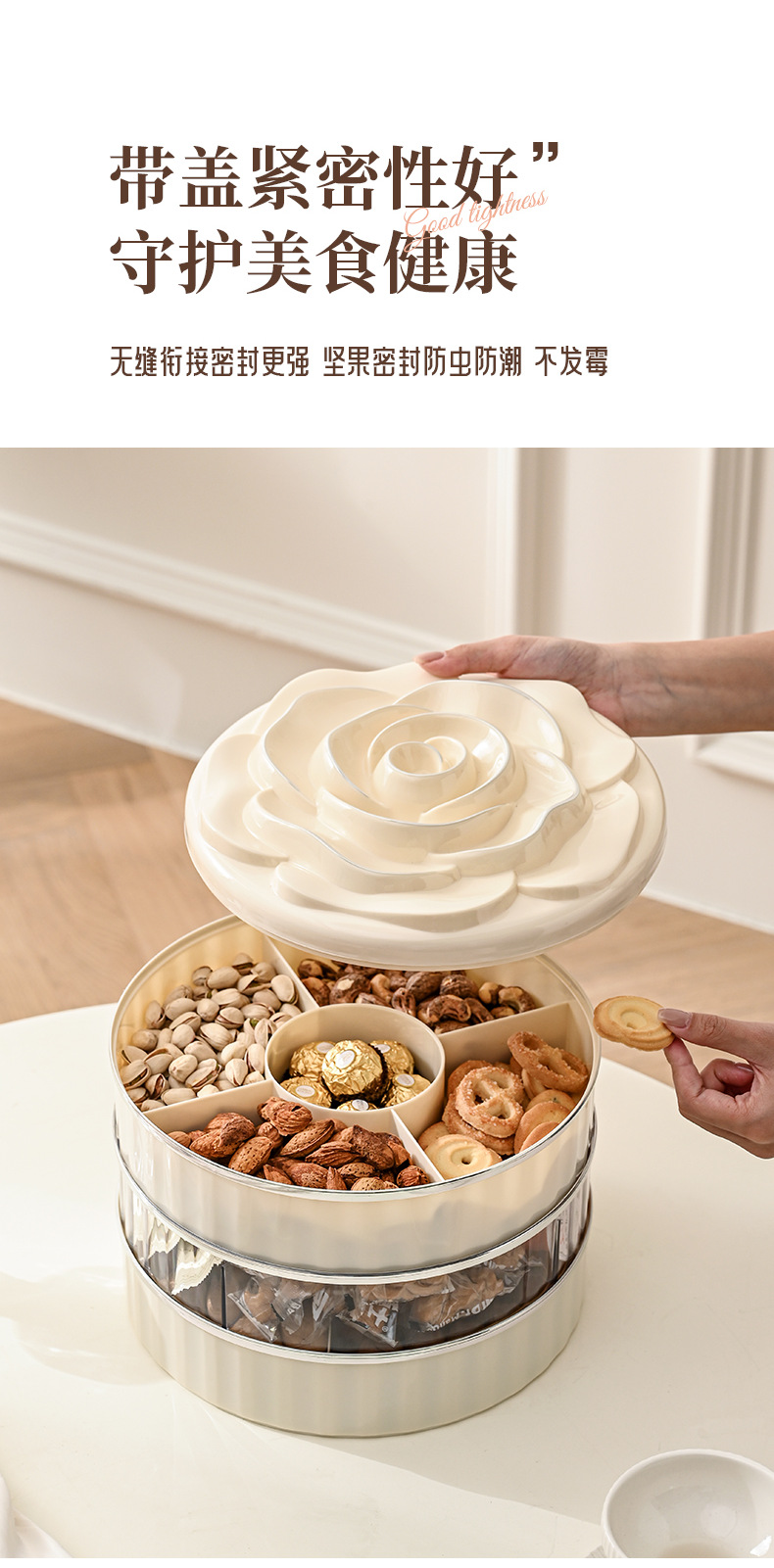家用轻奢山茶花分格糖果盒家用高颜值客厅干果盒多层坚果零食果盘