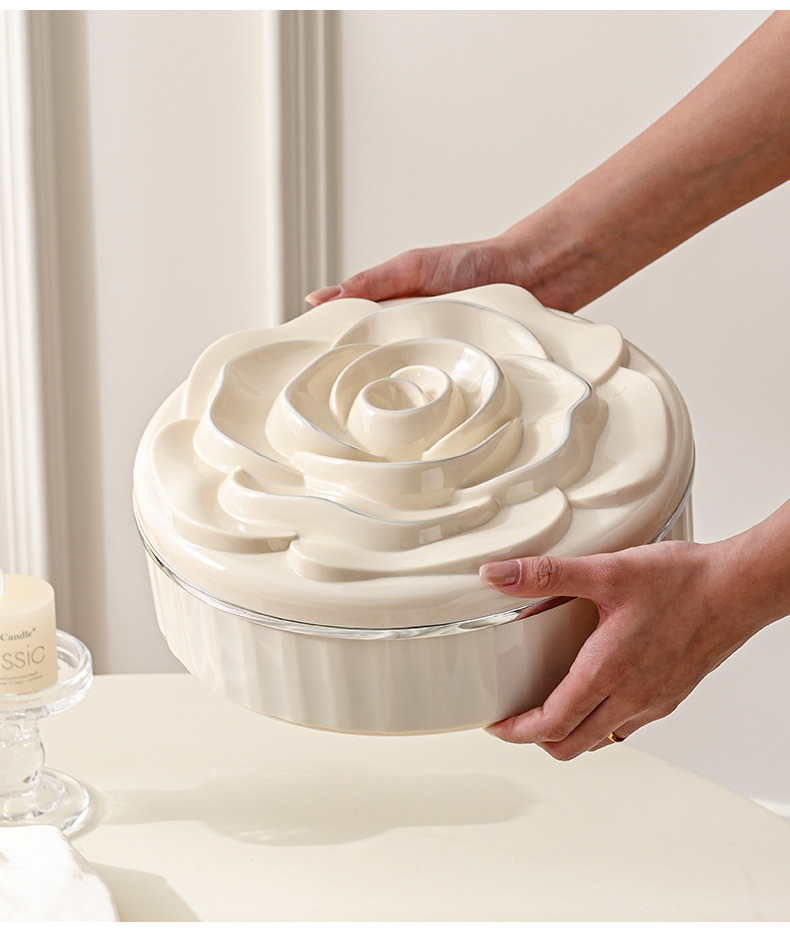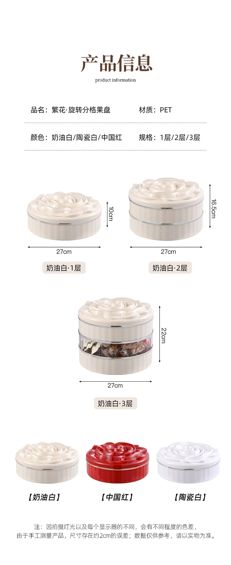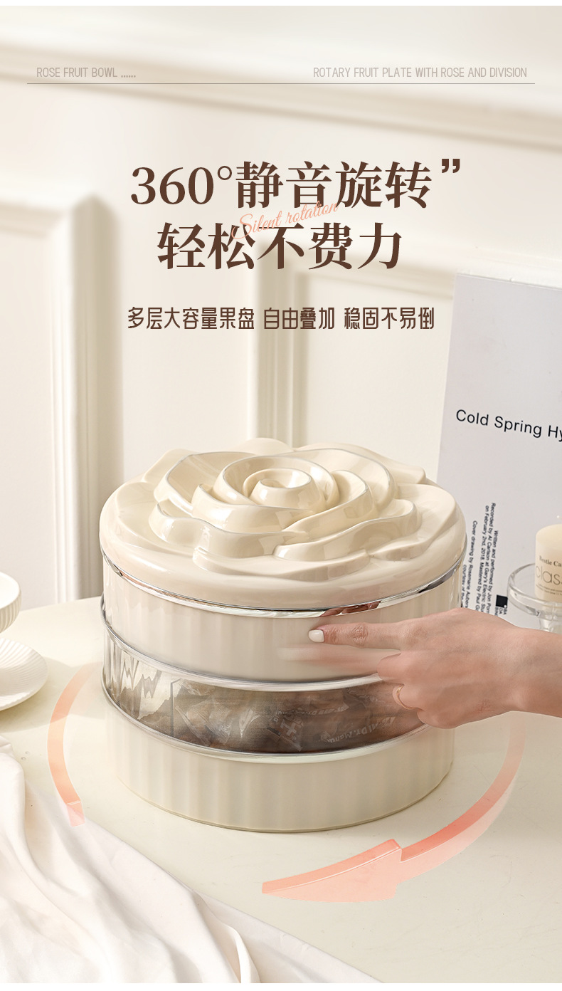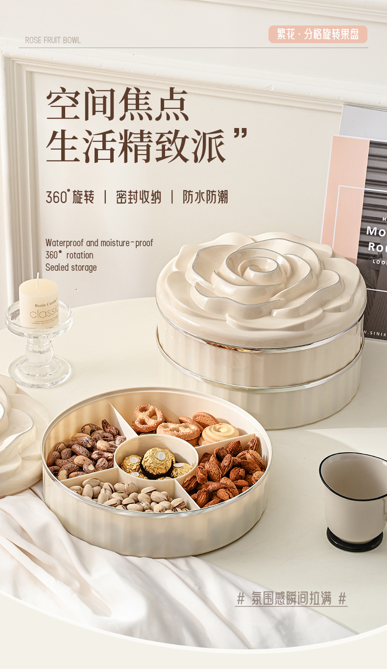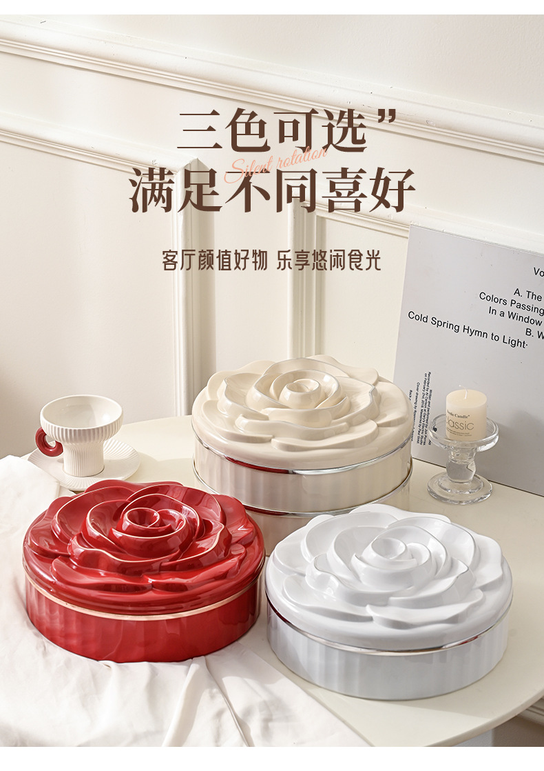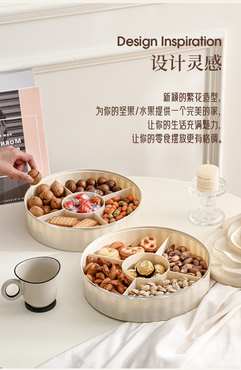 家用轻奢山茶花分格糖果盒家用高颜值客厅干果盒多层坚果零食果盘