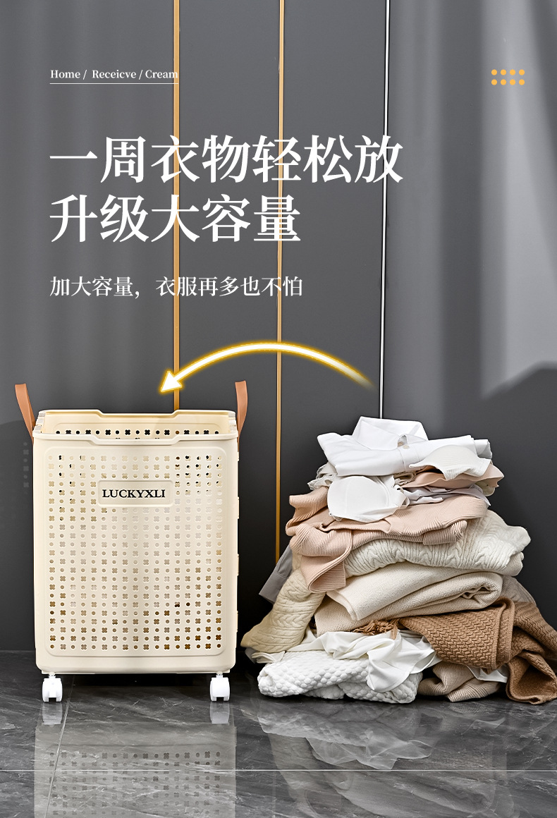 家用折叠脏衣篮家用带轮子可移动浴室卧室多功能大号脏衣篓收纳筐