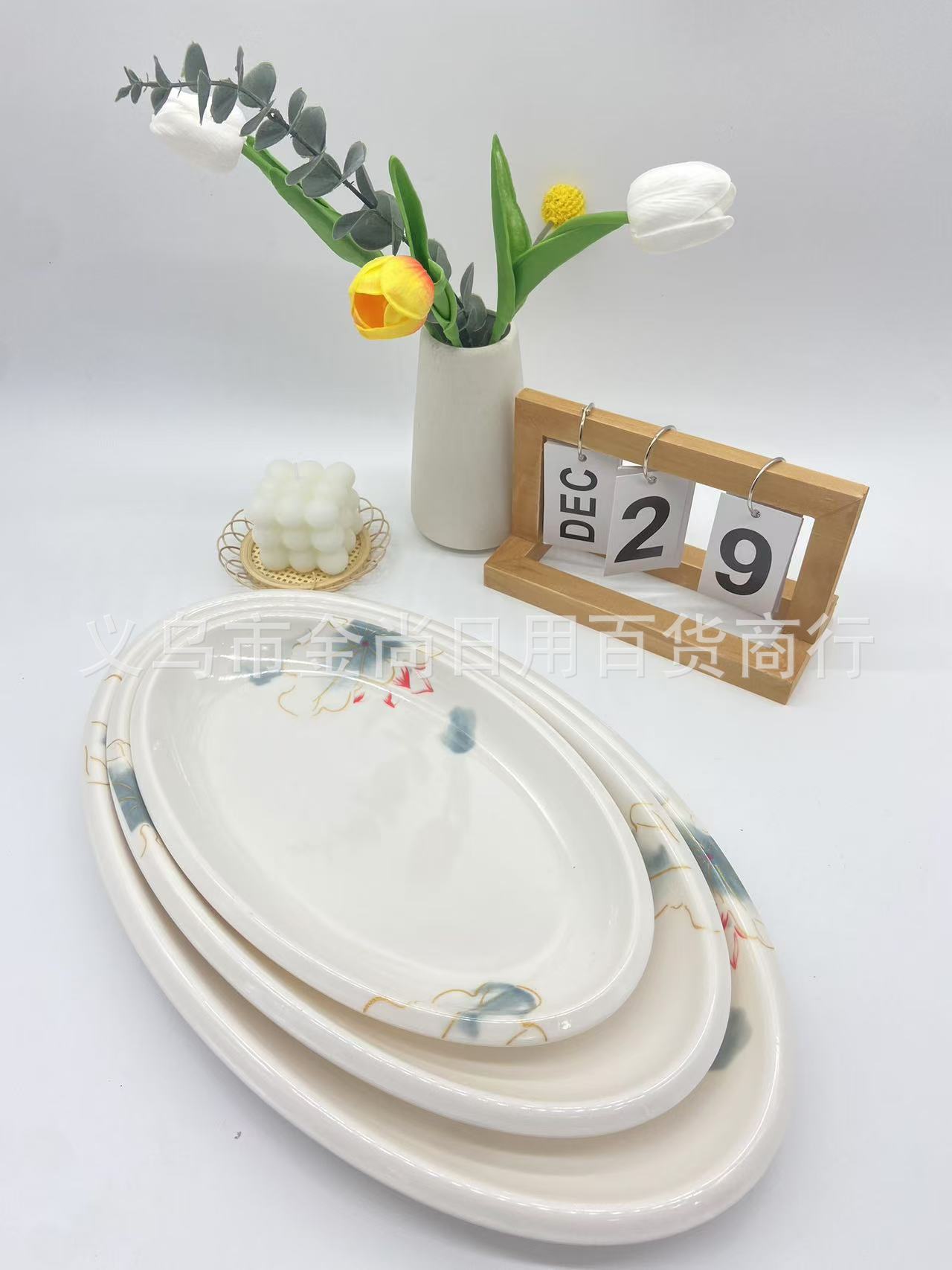 密胺椭圆方形盘子塑料小吃凉菜盘子仿瓷椭圆形鱼盘大排档饭店炒菜